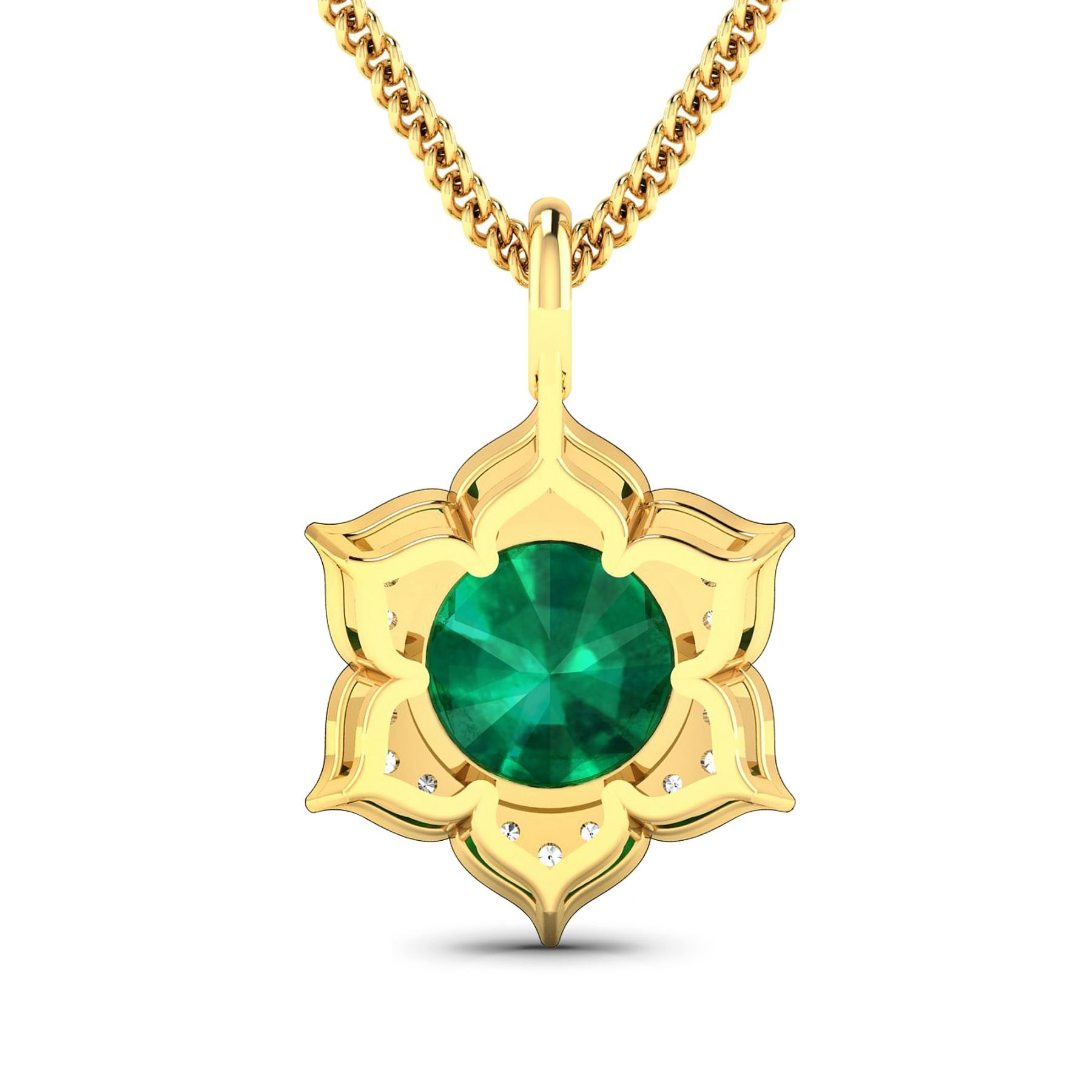 Zambian Emerald (AA) Round 8.00mm - 1Pc + White Diamond F/C Round 1.30mm - 6Pcs + White Diamond F/C Round 1.10mm - 12Pcs ( White Pan Rhodium ) ( SI2/HI color ) Total weight of gemstone is 1.8cts. Total Diamond weight is 0.14cts. Total weight of this pendant is 2.01 grams.
