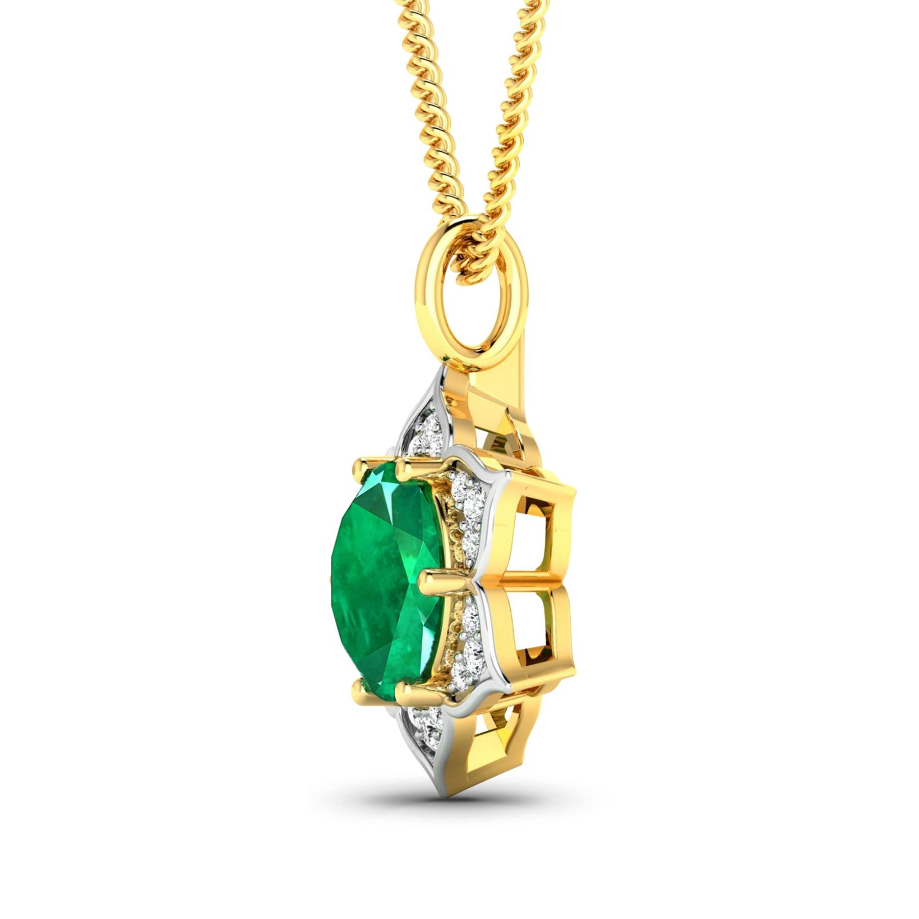 Zambian Emerald (AA) Round 8.00mm - 1Pc + White Diamond F/C Round 1.30mm - 6Pcs + White Diamond F/C Round 1.10mm - 12Pcs ( White Pan Rhodium ) ( SI2/HI color ) Total weight of gemstone is 1.8cts. Total Diamond weight is 0.14cts. Total weight of this pendant is 2.01 grams.