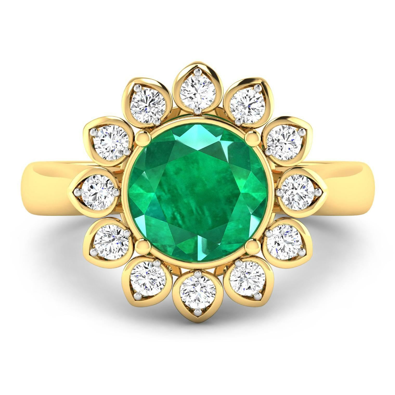Zambian Emerald (AA) Round 8.00mm - 1Pc + White Diamond F/C Round 2.00mm - 12Pcs ( White Pan Rhodium ) ( SI-2/HI ) Total weight of gemstone is 1.8cts. Total Diamond weight is 0.36cts. Total weight of this ring is 3.35 grams. Ring size 7.