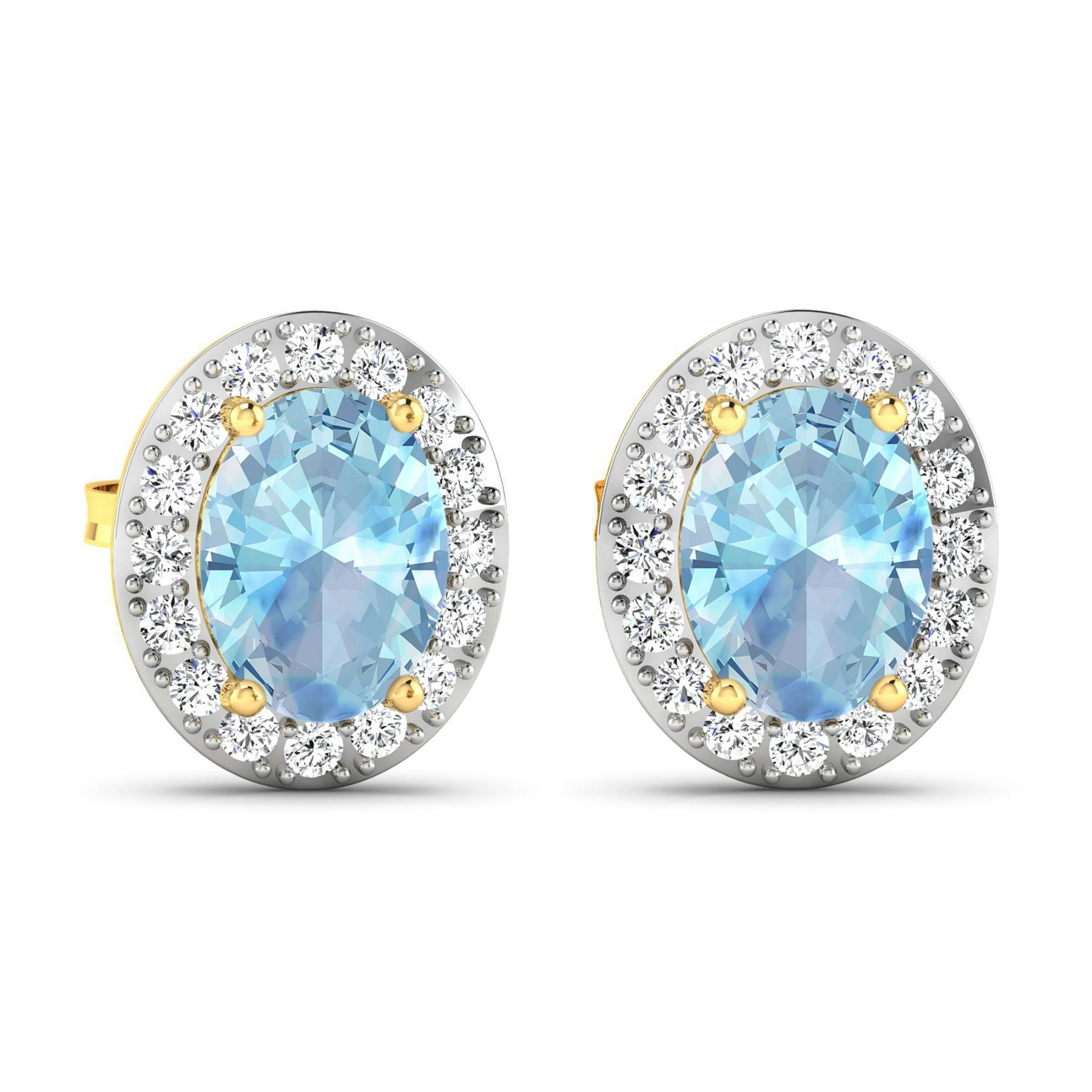 Aquamarine Oval 8x6mm - 2Pcs + White Diamond F/C Round 1.50mm - 32Pcs ( Diamond Quality : SI-2/HI ) ( Push Post ) Total weight of gemstones is 1.92cts. Total Diamond weight is 0.44cts. Total weight of these earrings are 2.6 grams.