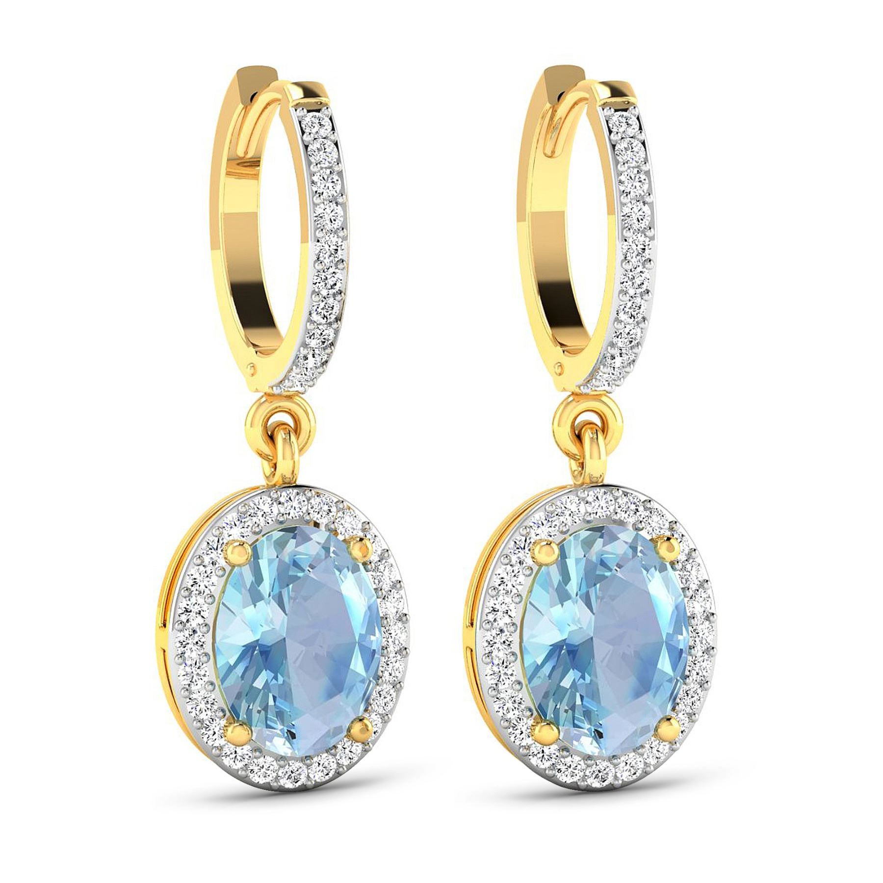 14KT Yellow Gold 1.92ctw Aquamarine and Diamond Earrings