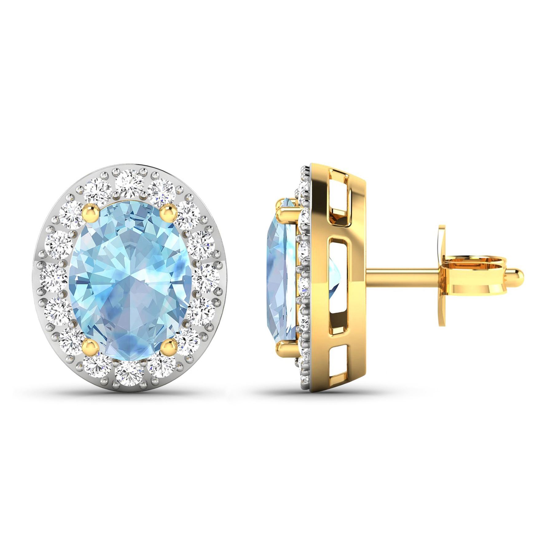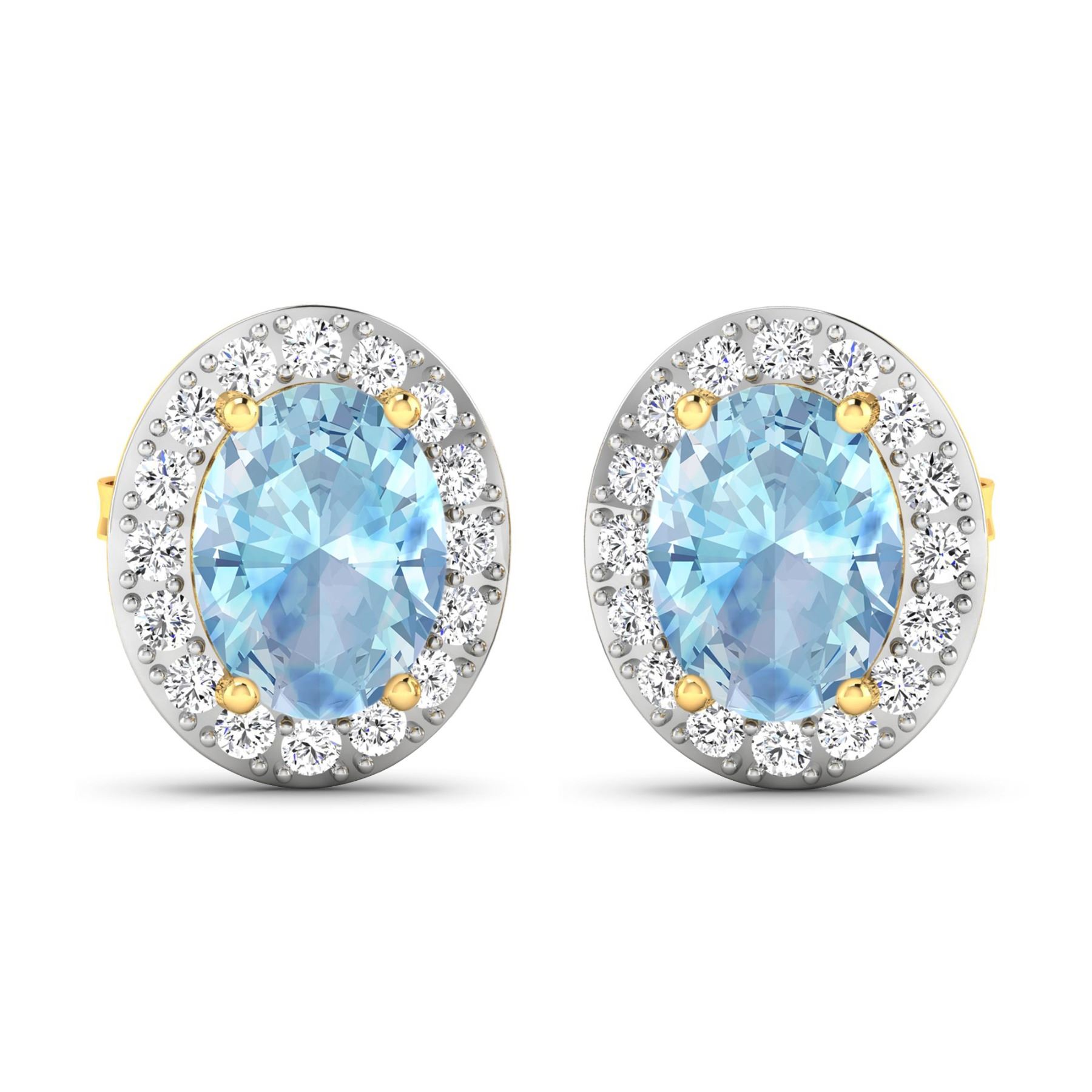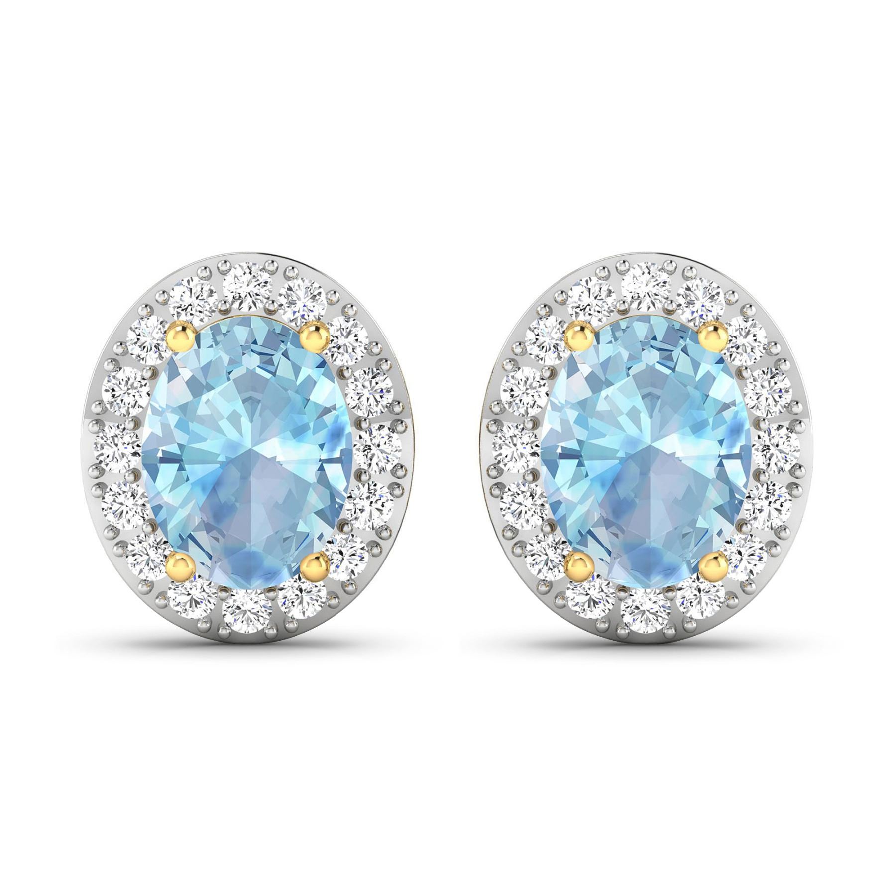 Aquamarine Oval 8x6mm - 2Pcs + White Diamond F/C Round 1.50mm - 32Pcs ( Diamond Quality : SI-2/HI ) ( Push Post ) Total weight of gemstones is 1.92cts. Total Diamond weight is 0.44cts. Total weight of these earrings are 2.6 grams.