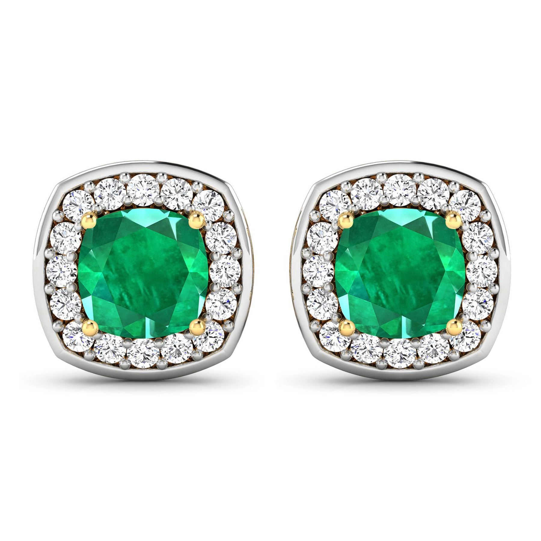 Zambian Emerald (AA) Cushion 6.00mm - 2Pcs + White Diamond F/C Round 1.50mm - 32Pcs ( Diamond Quality : SI-2/HI ) ( Push Post ) Total weight of gemstones is 1.92cts. Total Diamond weight is 0.44cts. Total weight of these earrings are 3.04 grams.