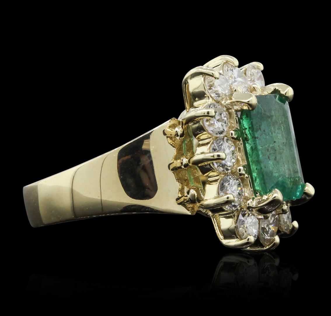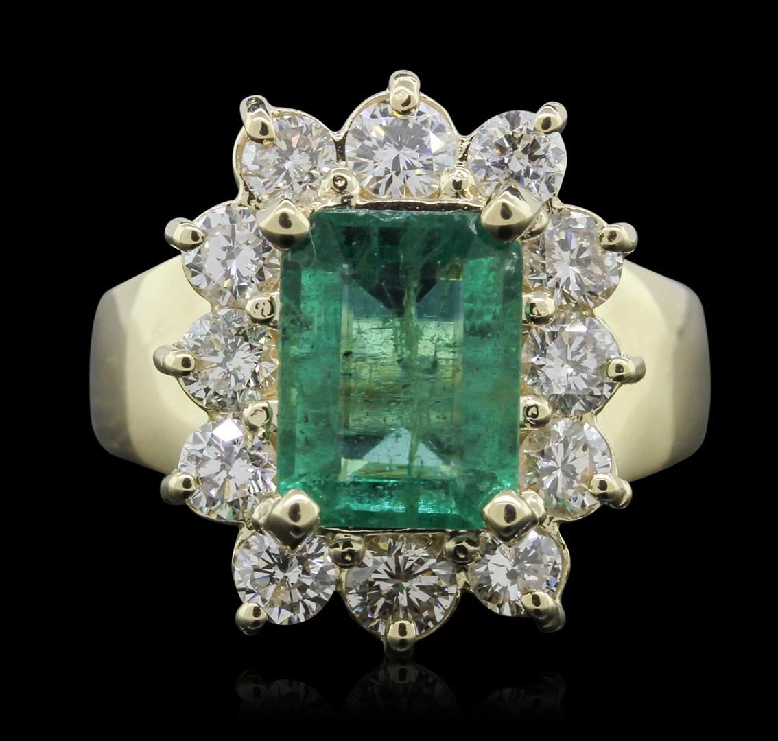 Great Condition! One electronically tested 14KT yellow gold Ladies combination cast & assembled fashion ring with a bright polish finish. Condition is new. Identified with markings of "14K". Containing: One prong set emerald standard step cut natural emerald, measuring 9.10 x 7.00 x 3.80mm, approximate weight of 1.95ct., clarity is moderately included, type III, medium, very slightly grayish, very slightly bluish green color, (GIA vslbG 5/3), cut is good. Colored gemstones are presumed to have been subjected to commonly used and possible undetectable color/clarity enhancement processes. Twelve prong set round brilliant cut diamonds, measuring 3.00 - 3.00 x 1.80mm (depth est.) approximate total weight of 12 Stones = 1.19ct. Clarity of SI-2 to I-1, Color of I - J, Cut is Good. Total Weight of Colored Stones 1.95ct. Total Weight of Diamonds 1.19ct. Total Weight of Ring 7.80 grams. GGL Appraised at $9,160.00.