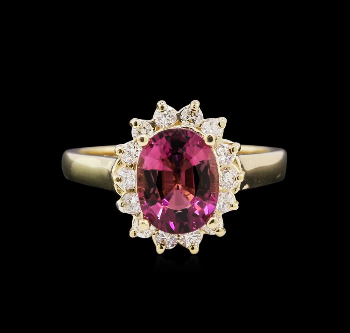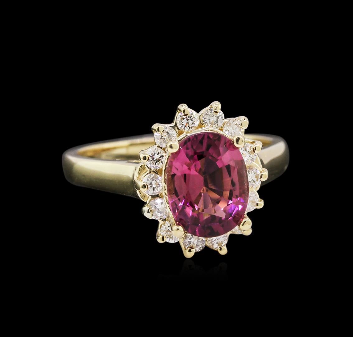 One ring featuring: 14KT yellow gold weighing 4.60 grams containing one pink tourmaline with a total weight of 1.95ct and diamonds with a total weight of 0.35ct.