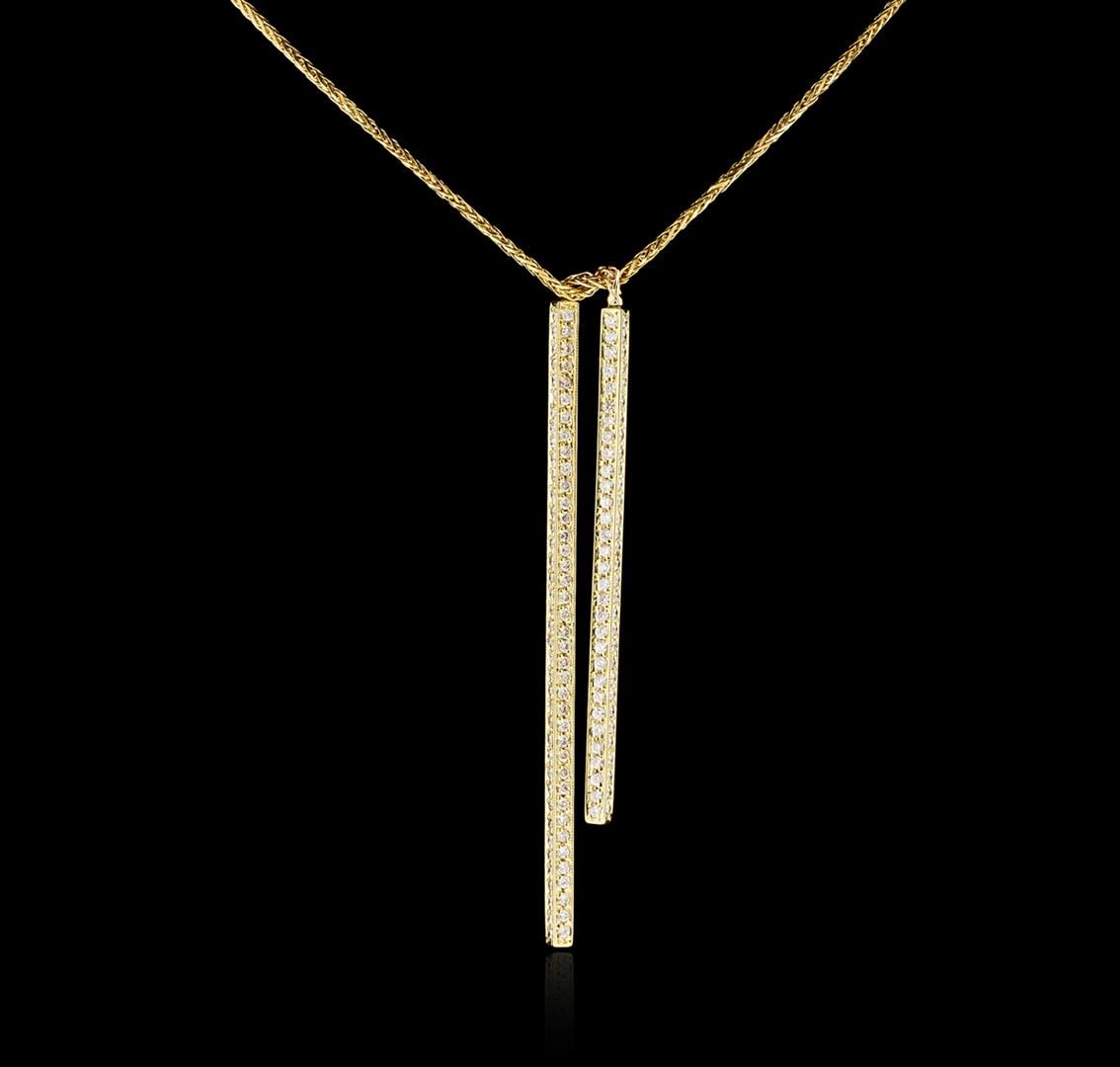 One electronically tested 14KT yellow gold ladies cast diamond necklace with a lobster claw clasp with a bright polish finish. Measurements: 20" in length Identified with markings of "585". Condition is very good. Containing: Two Hundred Forty-Eight prong set round brilliant cut diamonds, measuring 1.30 - 1.30 x 0.78mm (depth est.) approximate total weight of 248 Stones = 1.98ct. Clarity: SI-1 to SI-2. Color: G - H, Cut is Good. All diamonds are graded in the mounting, unless otherwise stated. Total Weight of Diamonds 1.98ct. Total Weight of Necklace 9.30 grams. GGL Appraised at $4,740.00.