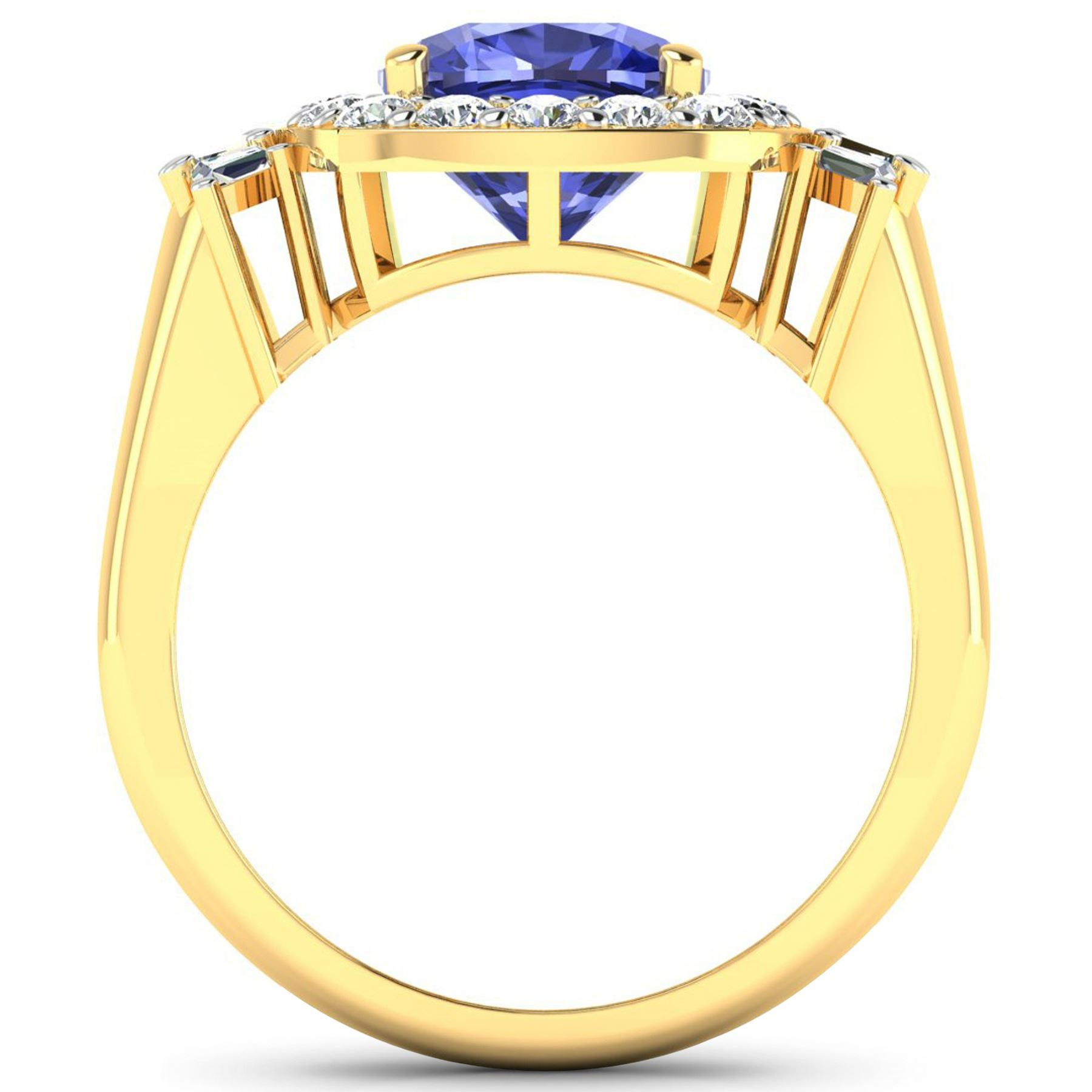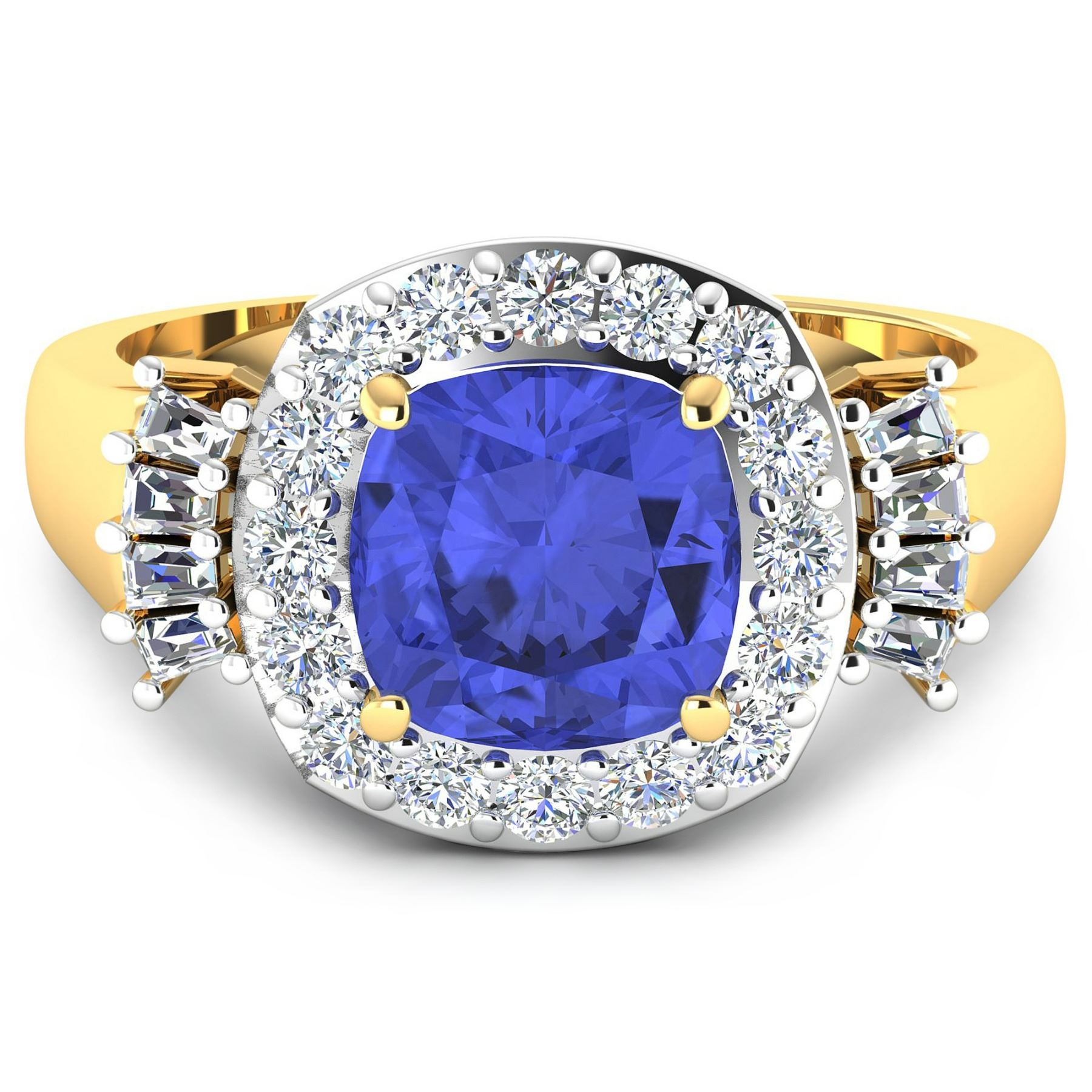 Tanzanite (AA+) Cushion 8.00mm - 1Pc + White Diamond Tapper Baguette 2.00x1.50x1.10mm - 8Pcs + White Diamond F/C Round 2.00mm - 16Pcs ( White Pan Rhodium ) ( Diamond Quality : SI-2/HI ). Total weight of gemstone is 1.99cts. Total weight of Diamonds is 0.73cts. Total weight of this ring is 4.46 grams. Ring size 7.
