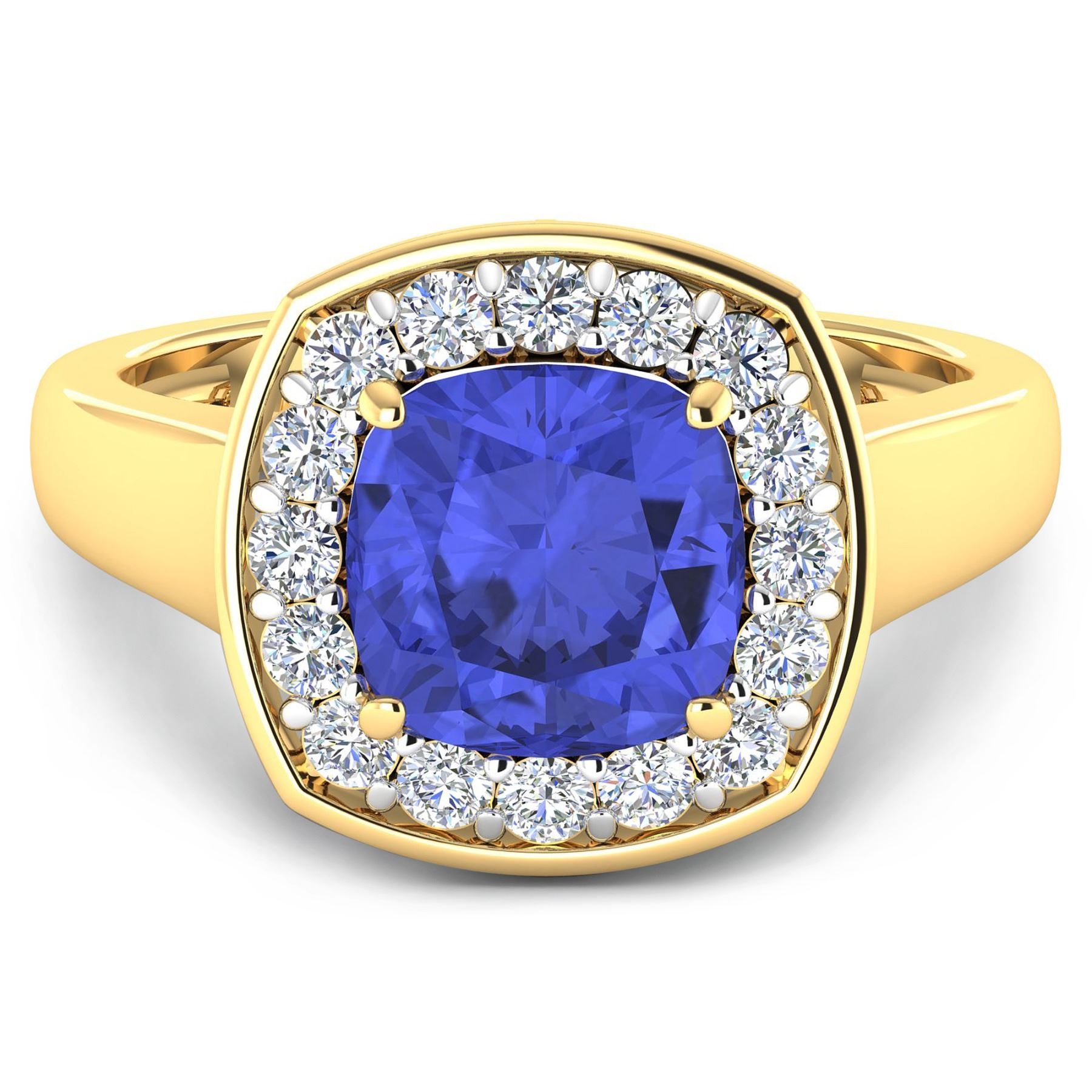 Tanzanite (AA+) Cushion 8.00mm - 1Pc + White Diamond F/C Round 2.00mm - 16Pcs ( White Pan Rhodium ) ( Diamond Quality : SI-2/HI ). Total weight of gemstone is 1.99cts. Total weight of Diamonds is 0.48cts. Total weight of this ring is 4.2 grams. Ring size 7.