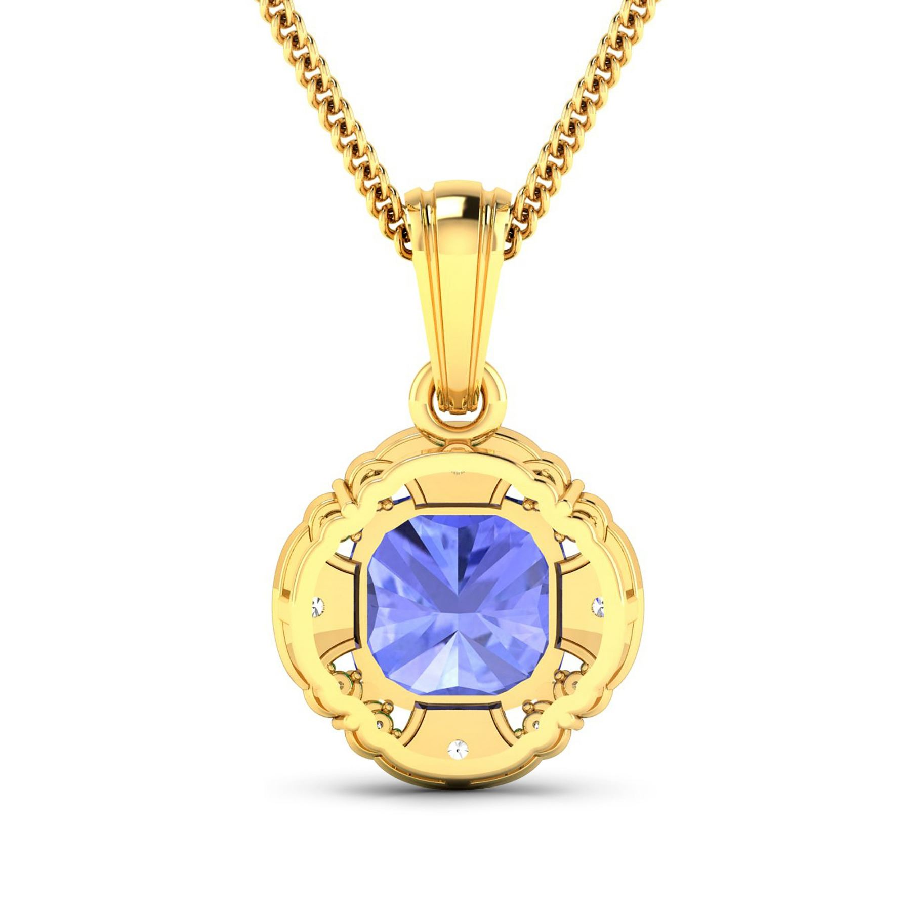 Tanzanite (AA+) Cushion 8.00mm - 1Pc + White Diamond F/C Round 1.50mm - 4Pcs + White Diamond F/C Round 1.00mm - 8Pcs ( White Pan Rhodium ) ( SI-2/HI ) Total weight of gemstone is 1.99cts. Total Diamond weight is 0.09cts. Total weight of this pendant is 2.49 grams.