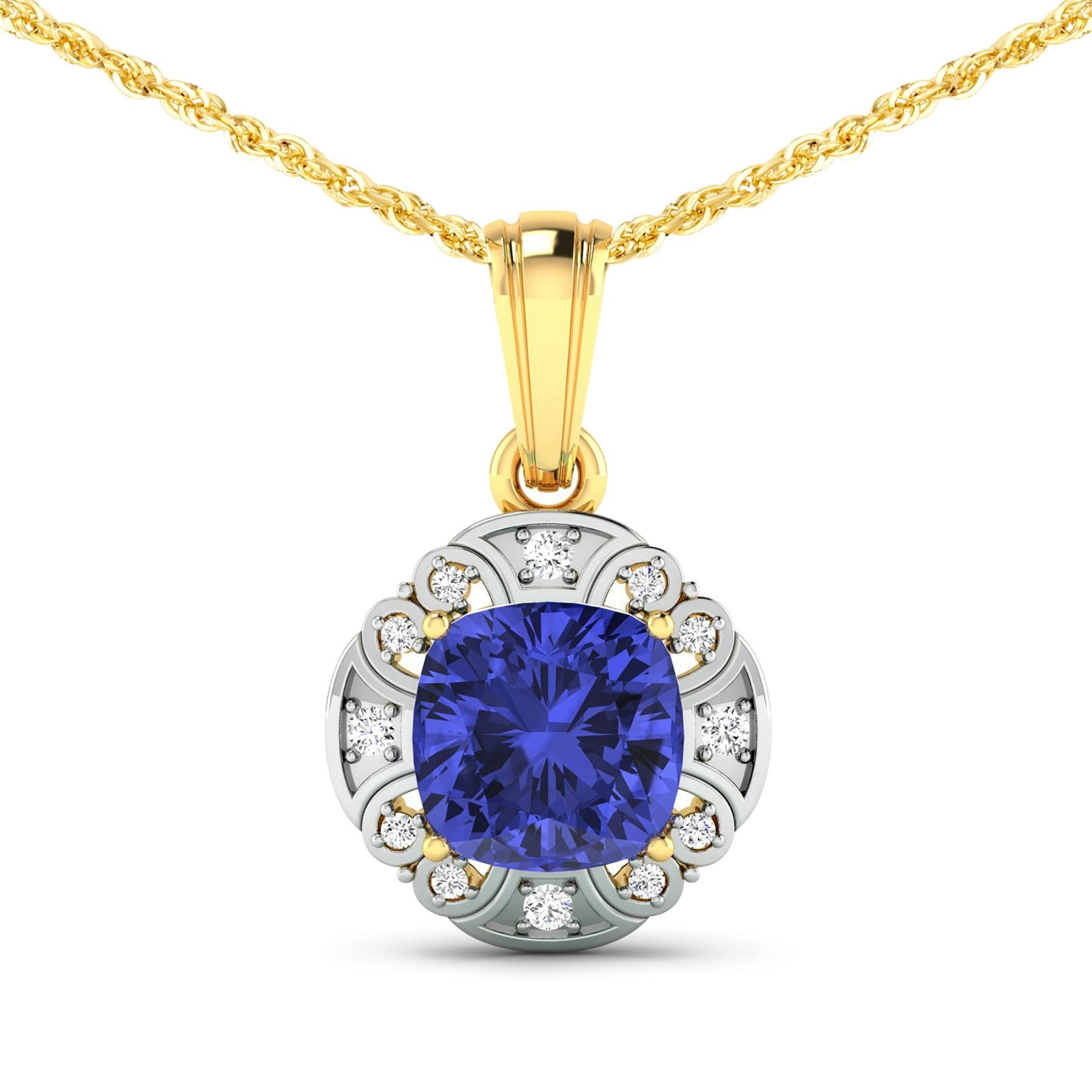 Tanzanite (AA+) Cushion 8.00mm - 1Pc + White Diamond F/C Round 1.50mm - 4Pcs + White Diamond F/C Round 1.00mm - 8Pcs ( White Pan Rhodium ) ( SI-2/HI ) Total weight of gemstone is 1.99cts. Total Diamond weight is 0.09cts. Total weight of this pendant is 2.49 grams.