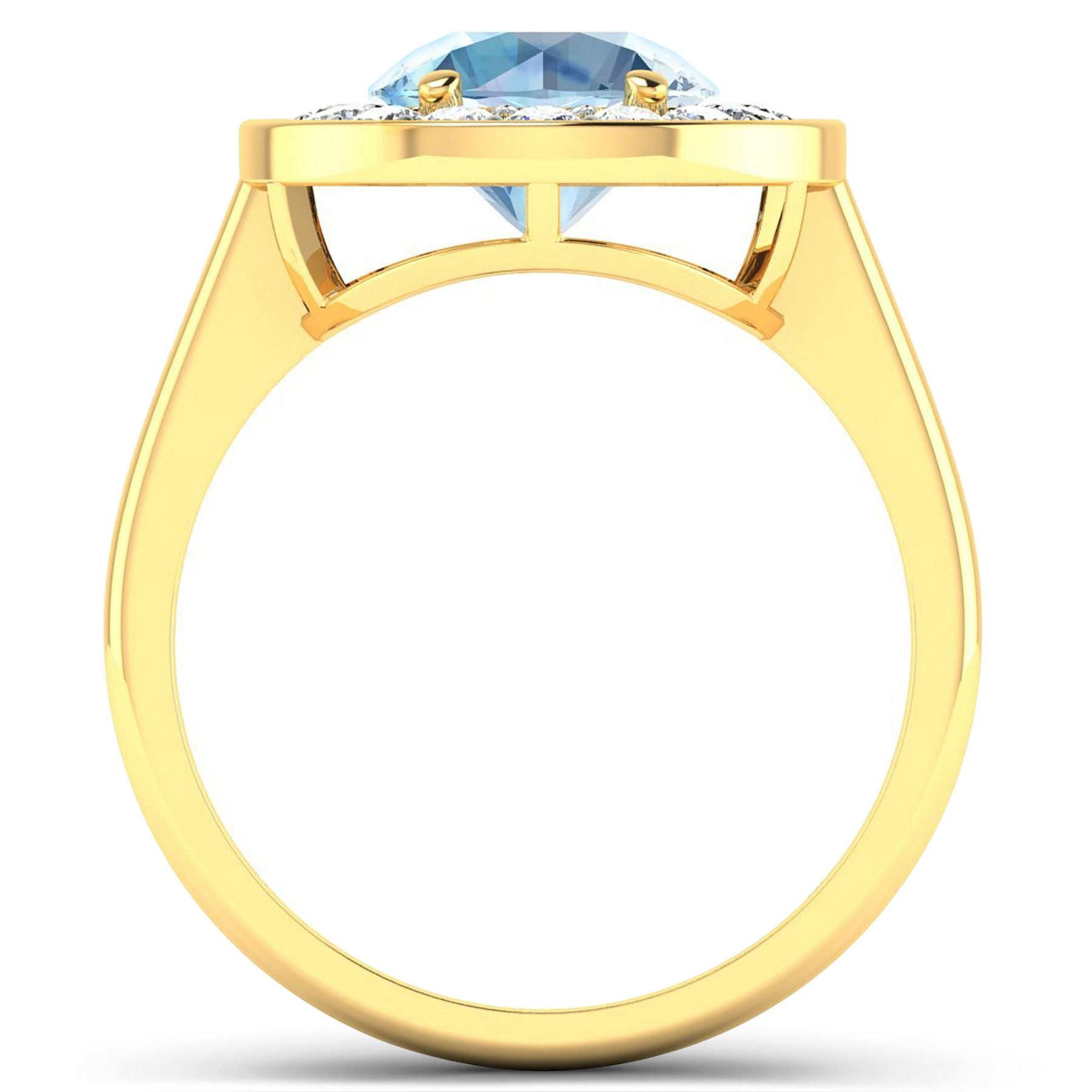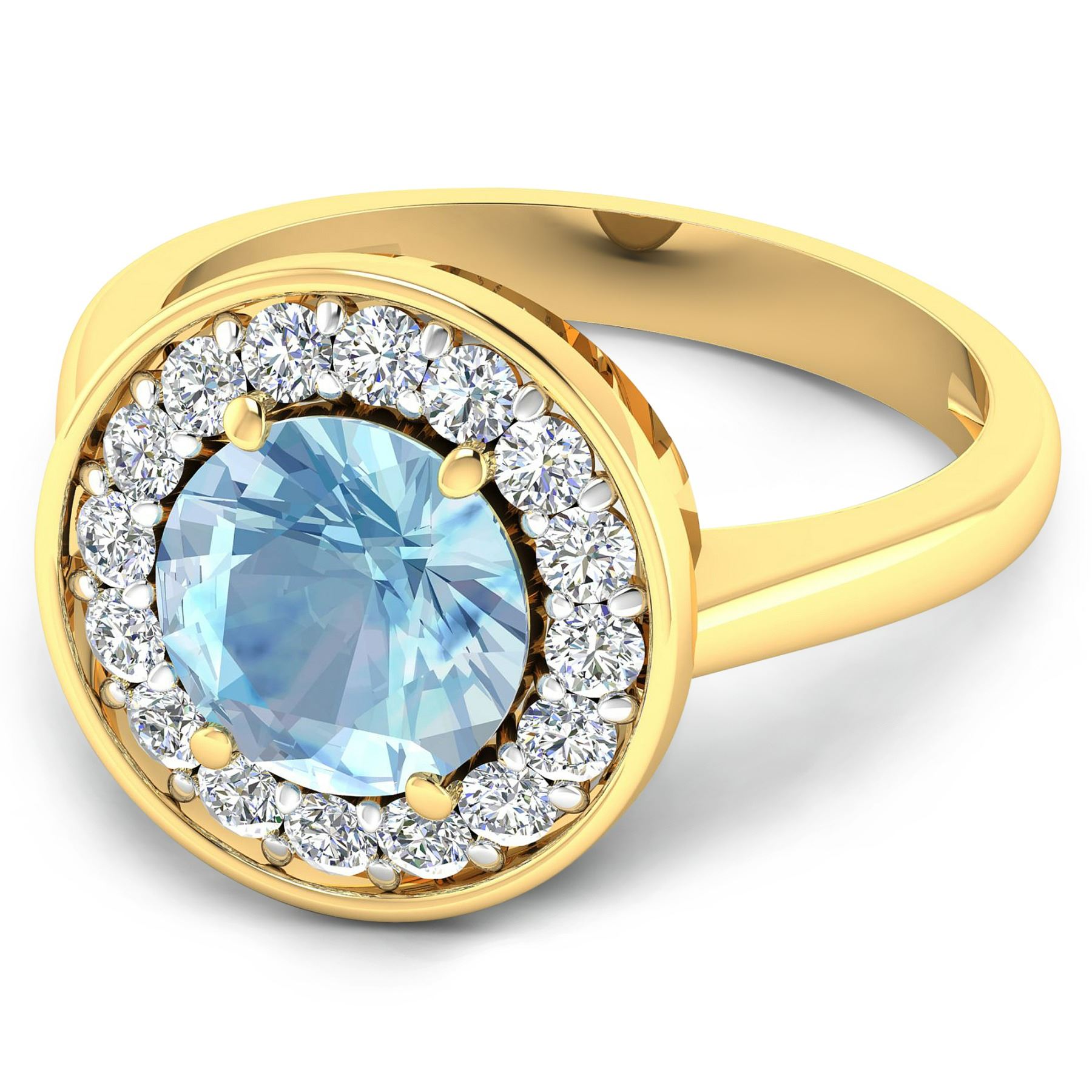Aquamarine (AA+) Round 8.00mm - 1Pc + White Diamond F/C Round 2.00mm - 16Pcs ( White Pan Rhodium ) ( Diamond Quality : SI-2/HI ). Total weight of gemstone is 1.9cts. Total weight of Diamonds is 0.48cts. Total weight of this ring is 3.84 grams. Ring size 7.