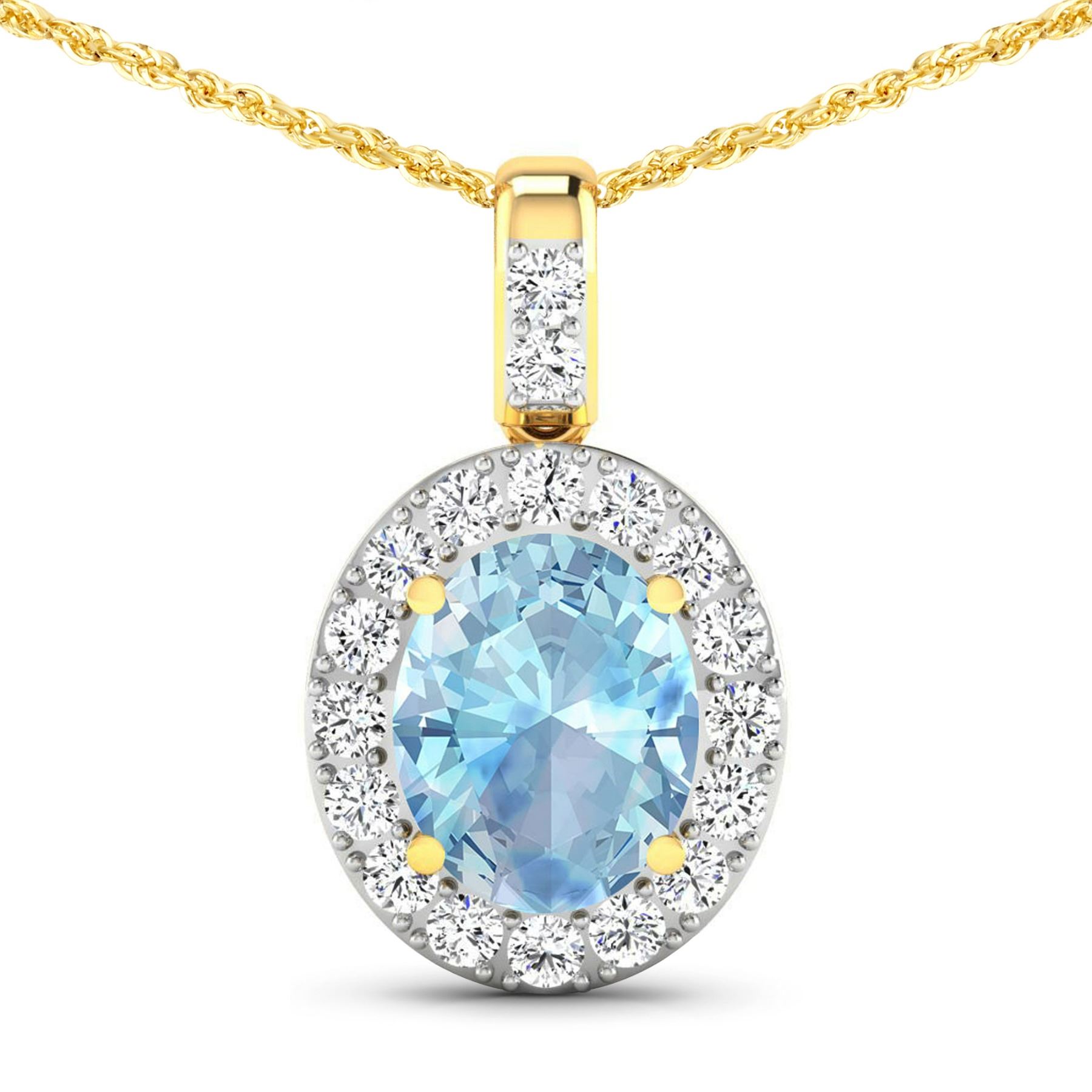Aquamarine Oval 10x8mm - 1Pc + White Diamond F/C Round 2.00mm - 18Pcs ( Diamond Quality : SI-2/HI ) Total weight of gemstone is 1.9cts. Total Diamond weight is 0.54cts. Total weight of this pendant is 2.35 grams.