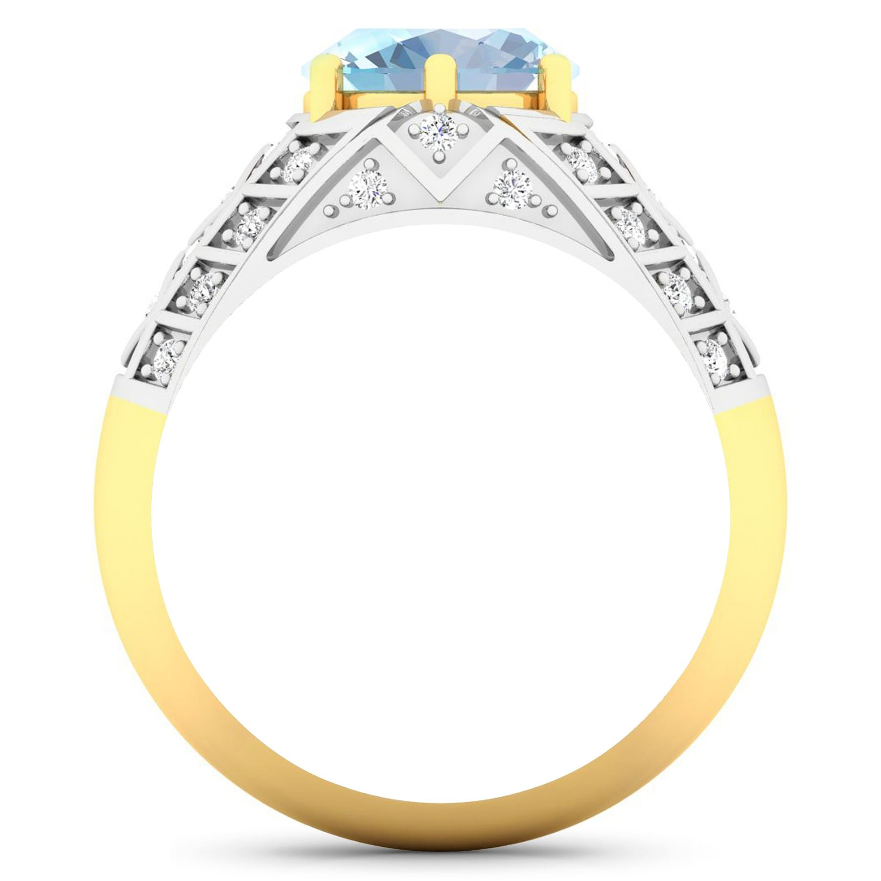 Aquamarine (AA+) Oval 10x8mm - 1Pc + White Diamond F/C Round 1.80mm - 4Pcs + White Diamond F/C Round 1.50mm - 8Pcs + White Diamond F/C Round 1.30mm - 16Pcs + White Diamond F/C Round 1.20mm - 6Pcs ( White Pan Rhodium ) ( SI-2/HI ) Total weight of gemstone is 1.9cts. Total Diamond weight is 0.42cts. Total weight of this ring is 4.53 grams. Ring size 7.