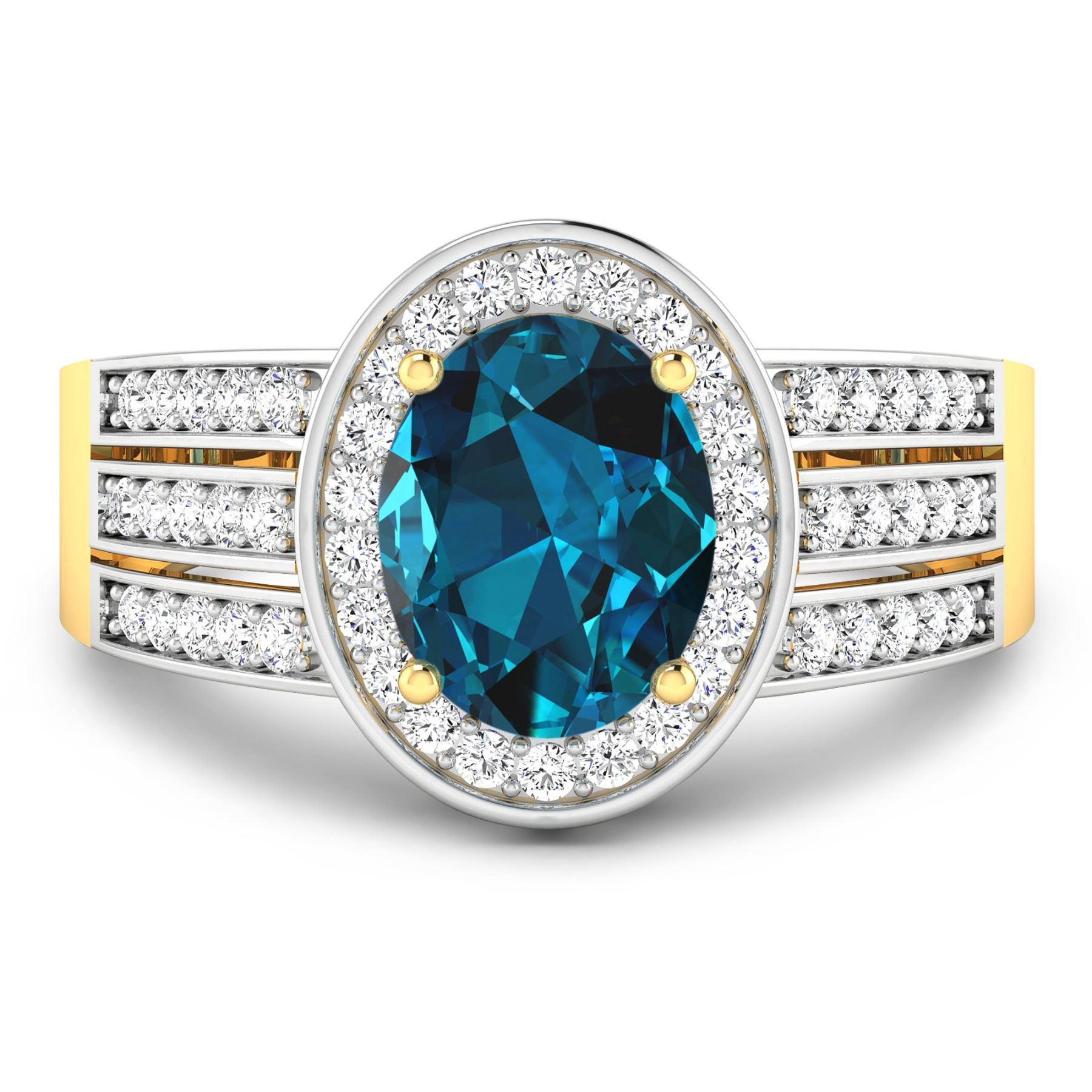 London Blue Topaz Oval 9x7mm - 1Pc + White Diamond F/C Round 1.30mm - 32Pcs + White Diamond F/C Round 1.20mm - 6Pcs + White Diamond F/C Round 1.10mm - 6Pcs + White Diamond F/C Round 1.00mm - 8Pcs ( White Pan Rhodium ) ( SI-2/HI ) Total weight of gemstone is 1.9cts. Total Diamond weight is 0.44cts. Total weight of this ring is 3.69 grams. Ring size 7.