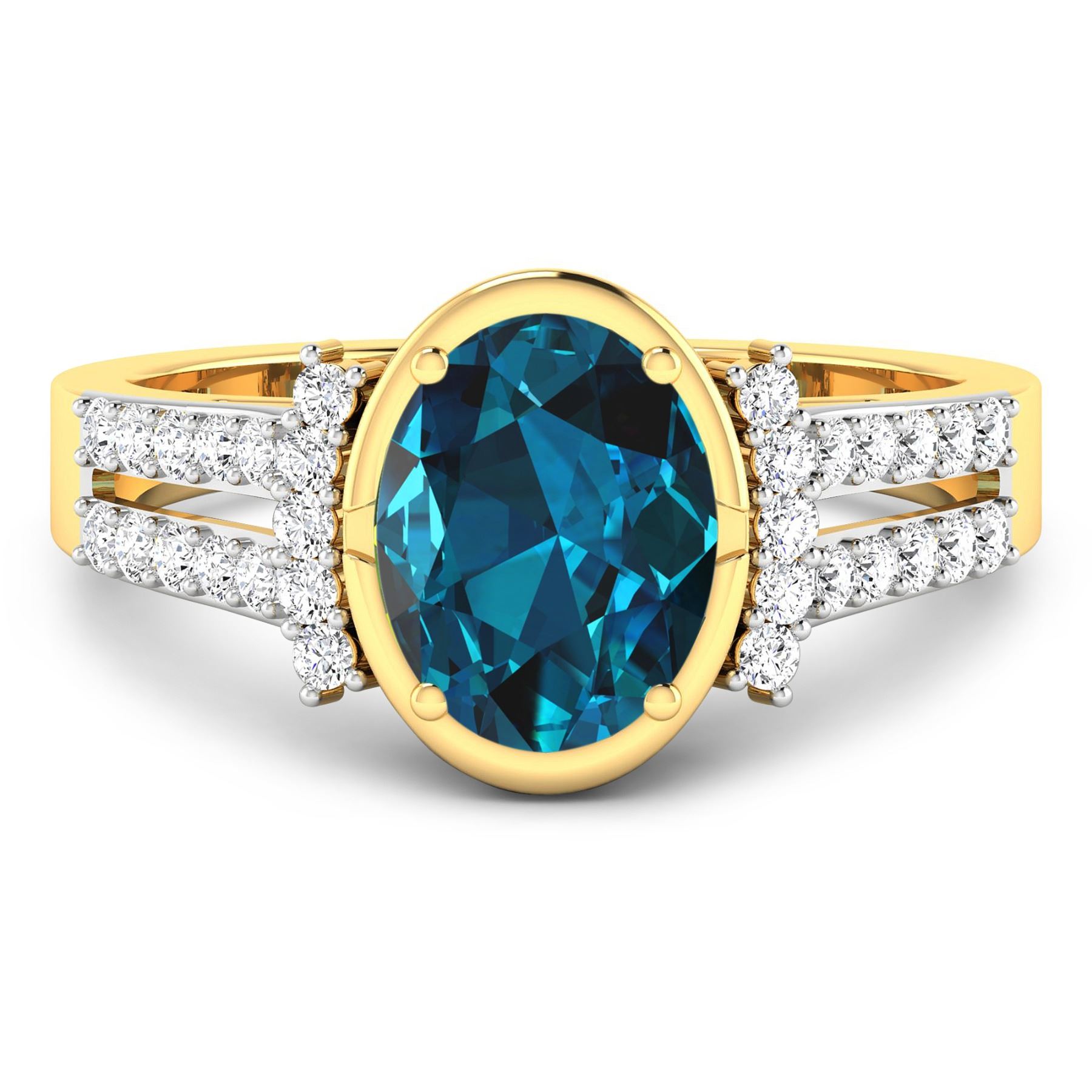 14KT Yellow Gold 1.9ctw London Blue Topaz and Diamond Ring