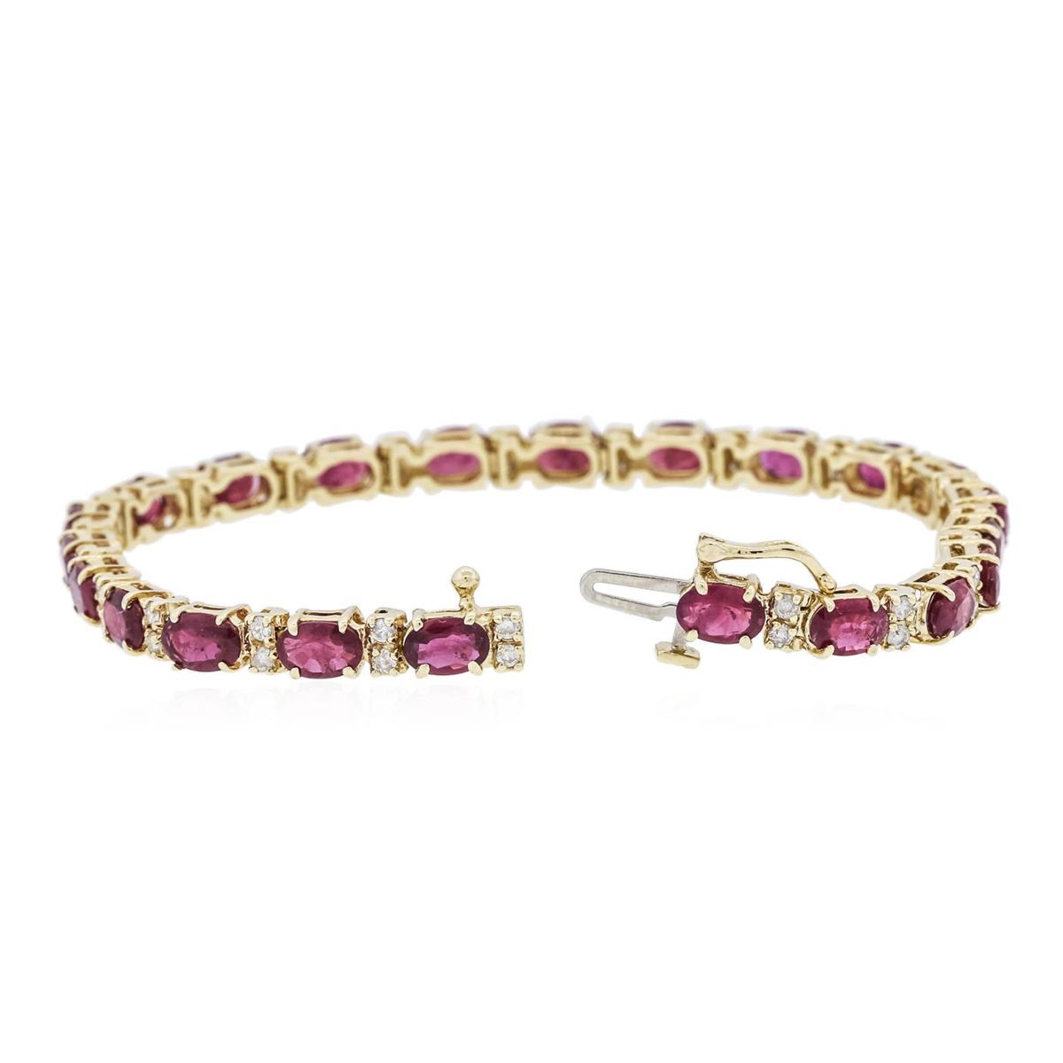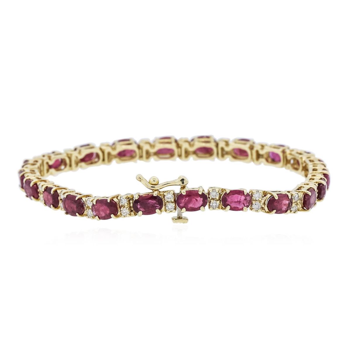 One bracelet featuring: 14KT yellow gold weighing 11.00 grams containing 22 rubies with a total weight of 11.87ct and 44 round diamonds with a total weight of 0.86ct.