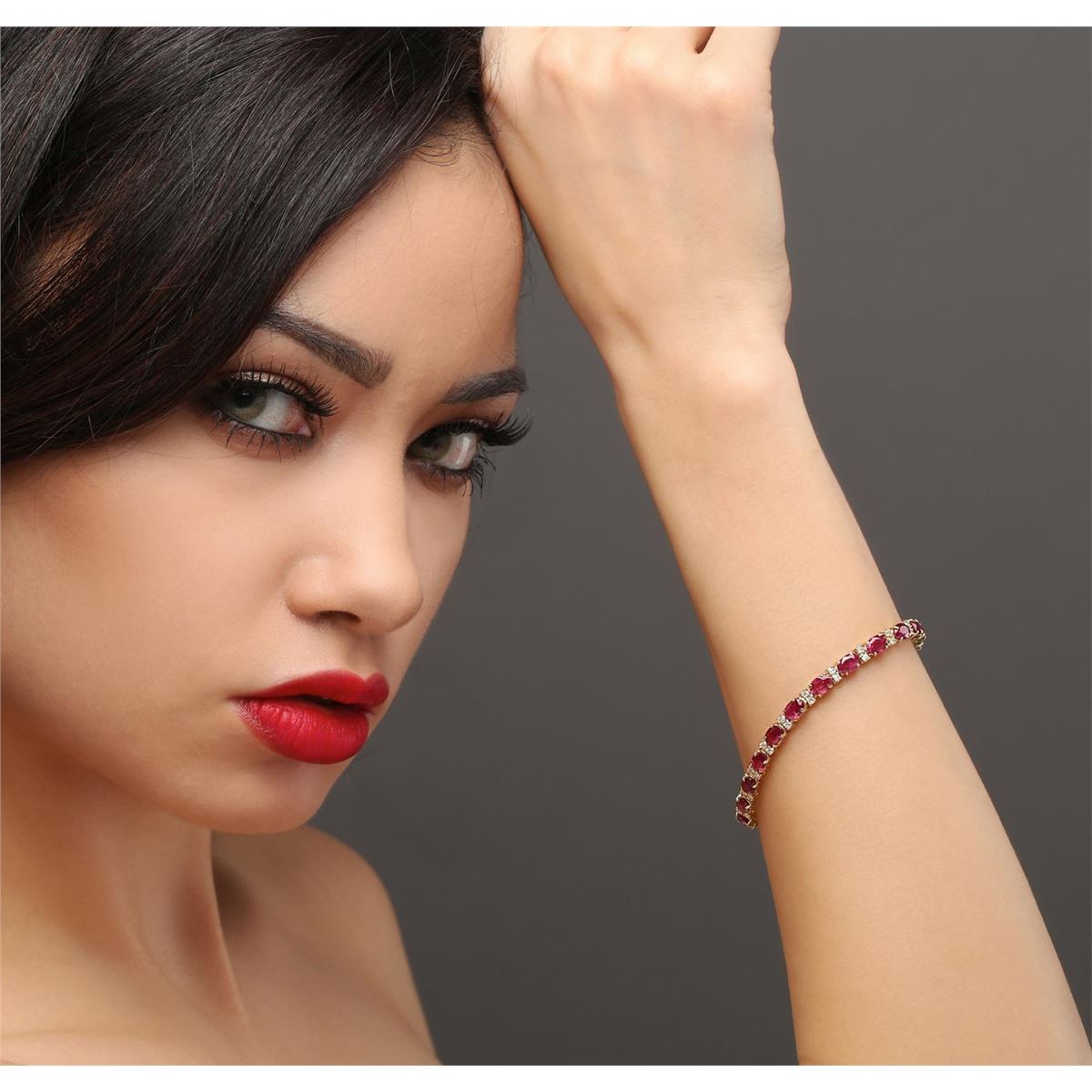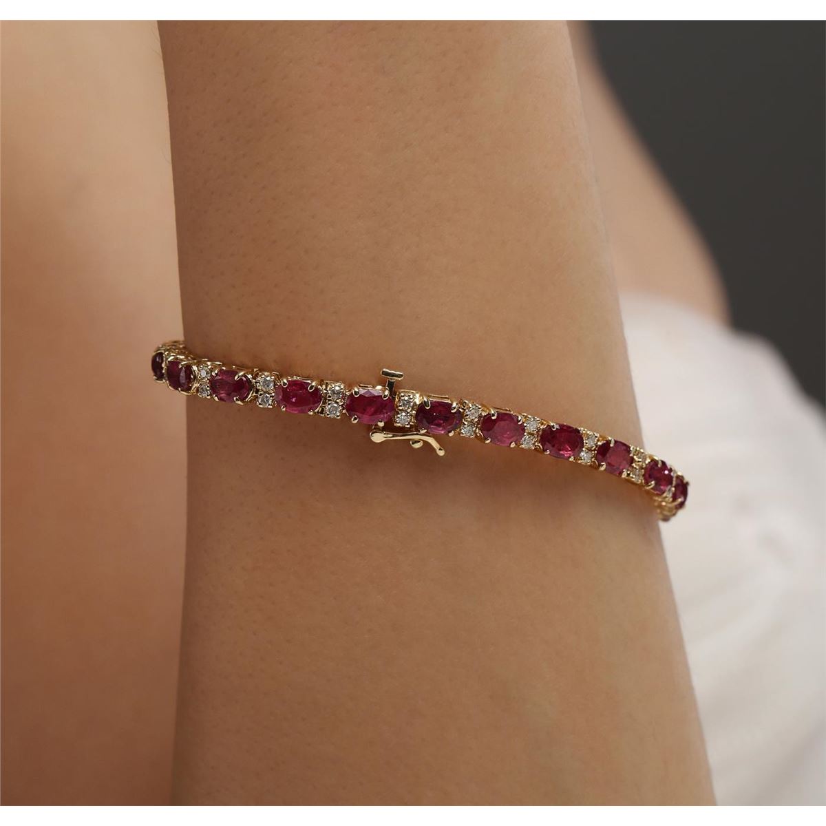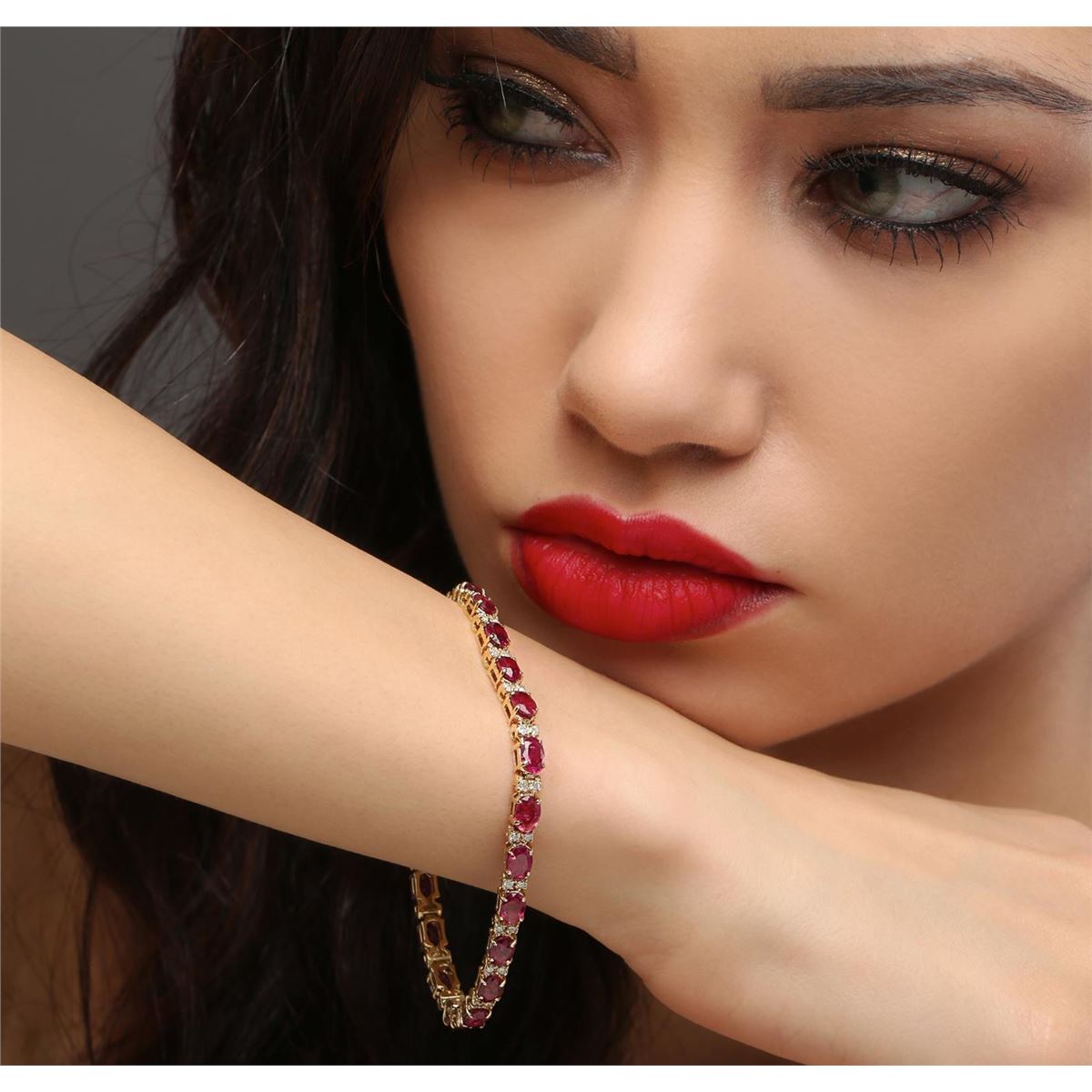 One bracelet featuring: 14KT yellow gold weighing 11.00 grams containing 22 rubies with a total weight of 11.87ct and 44 round diamonds with a total weight of 0.86ct.
