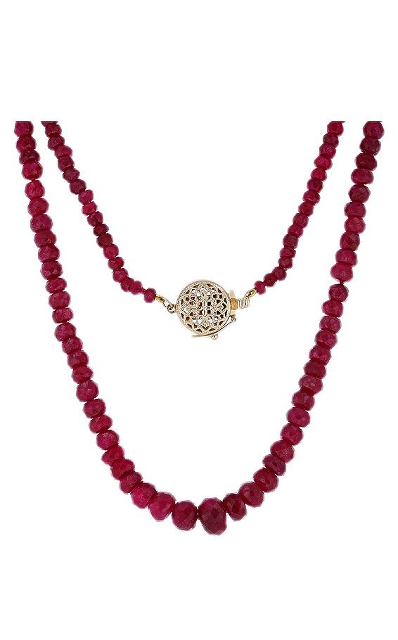 One 14KT Yellow Gold 120.00ctw Ruby Beaded Necklace. (170) beaded rubies with a total weight of 120.00cts.