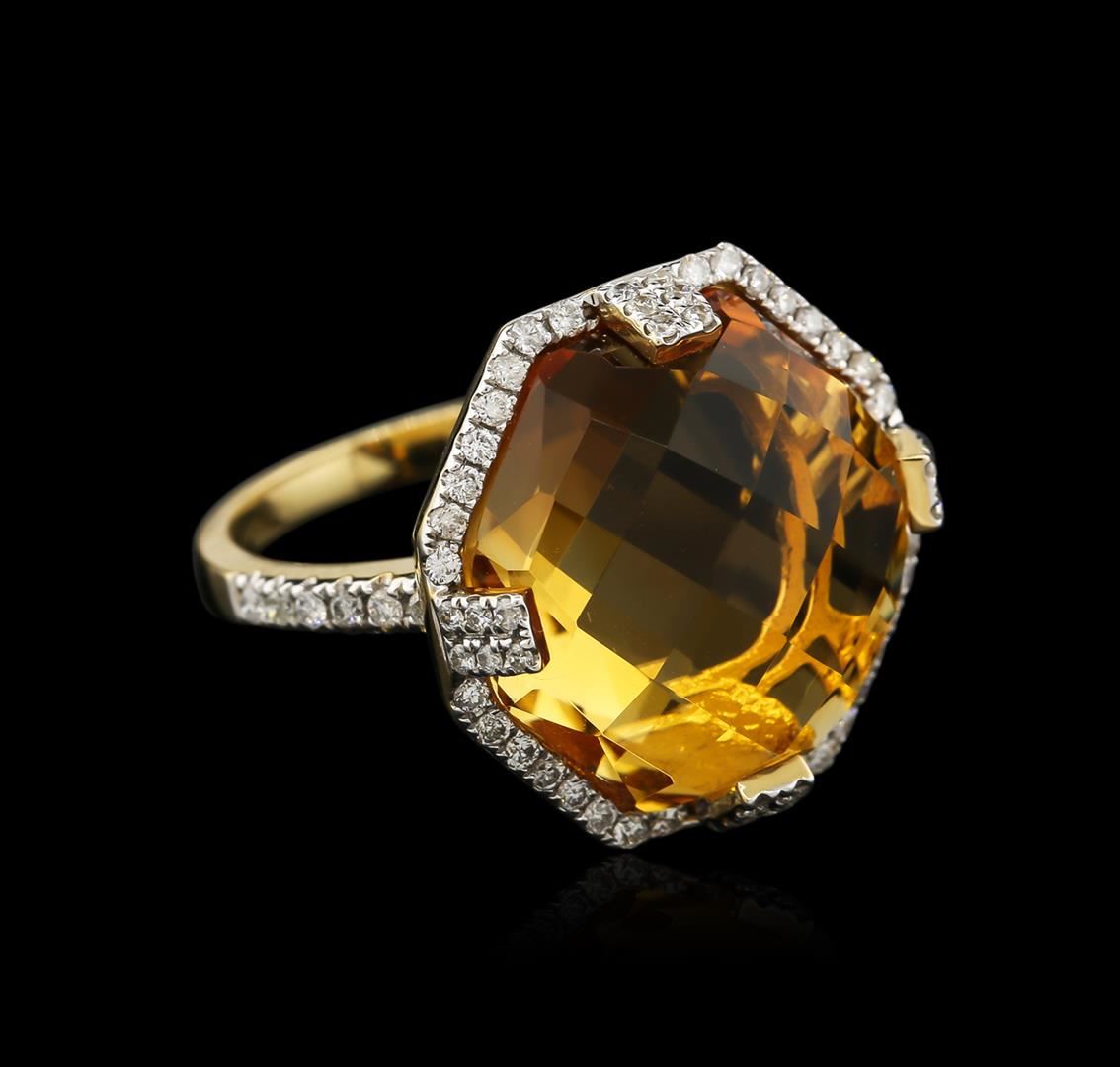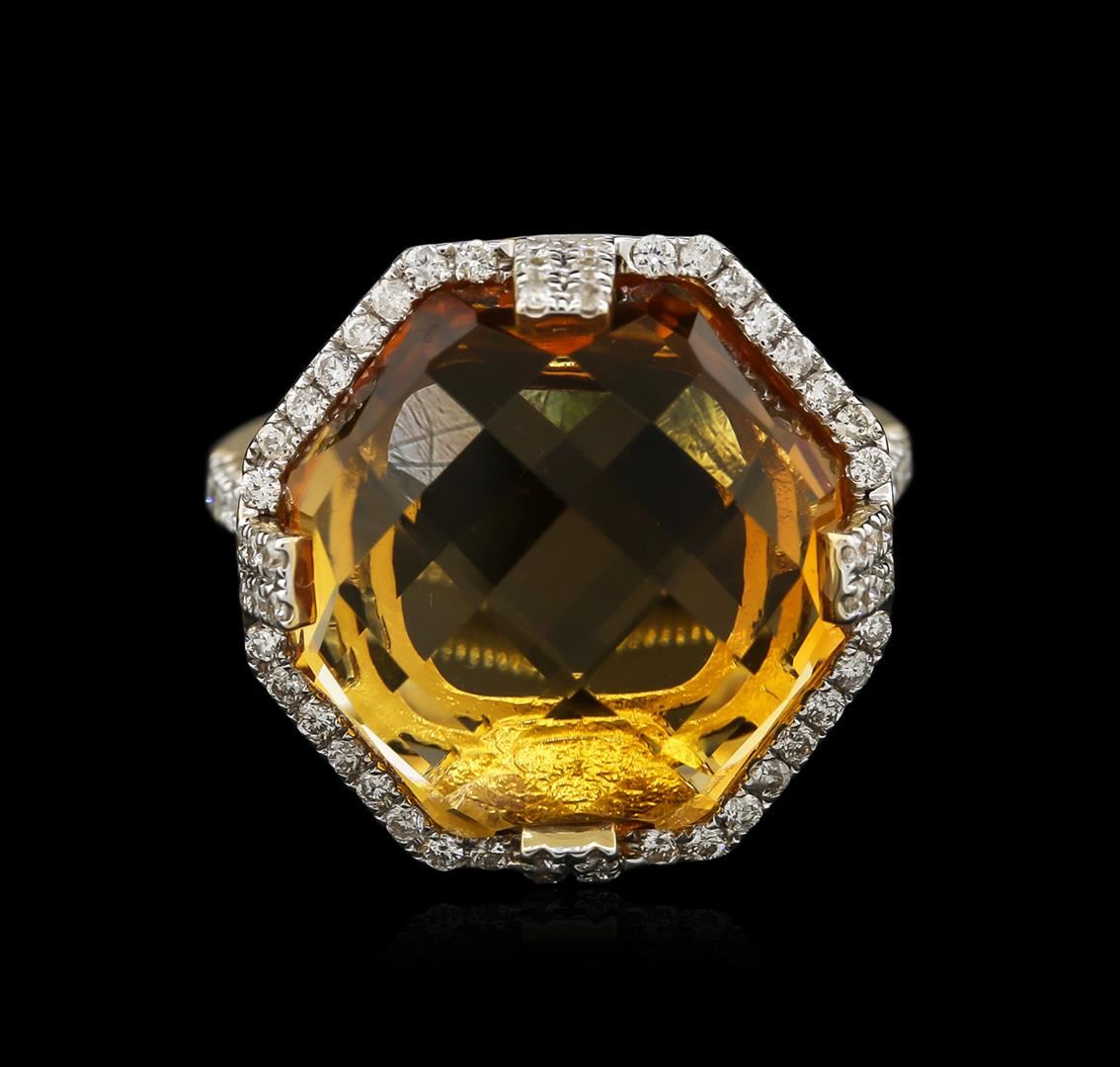 One ring featuring: 14KT yellow gold weighing 4.05 grams containing one citrine center stone with a total weight of 14.51ct and 68 round diamonds with a total weight of 0.47ct.