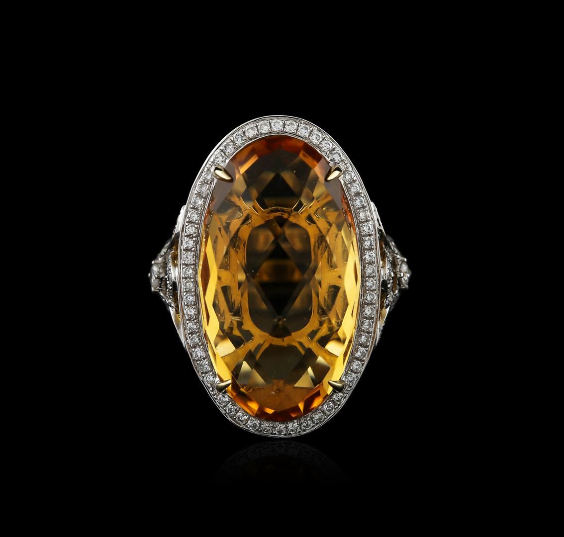One ring featuring: 14KT yellow gold weighing 4.90 grams containing one citrine center stone with a total weight of 15.81ct and 100 round diamonds with a total weight of 0.57ct.