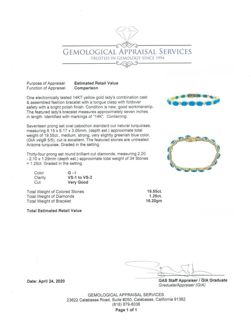 One electronically tested 14KT yellow gold lady's combination cast & assembled fashion bracelet with a tongue clasp with foldover safety with a bright polish finish. Condition is new, good workmanship. The featured lady's bracelet measures approximately s GAS Appraised.