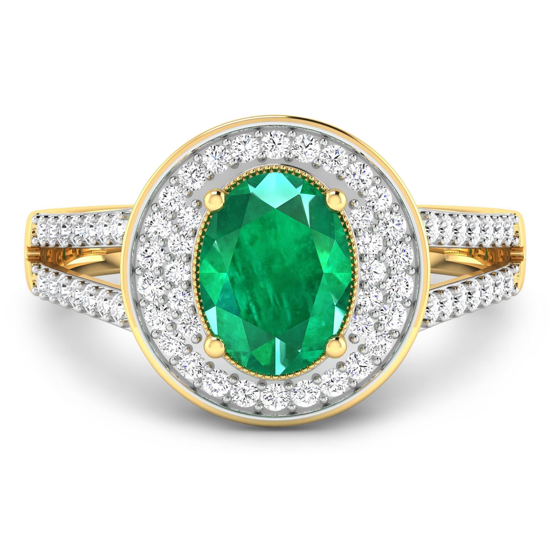 14KT Yellow Gold 1ctw Zambian Emerald and Diamond Ring