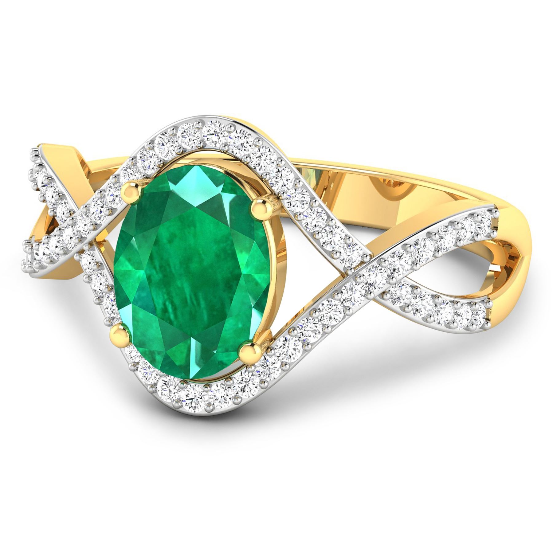 14KT Yellow Gold 1ctw Zambian Emerald and Diamond Ring