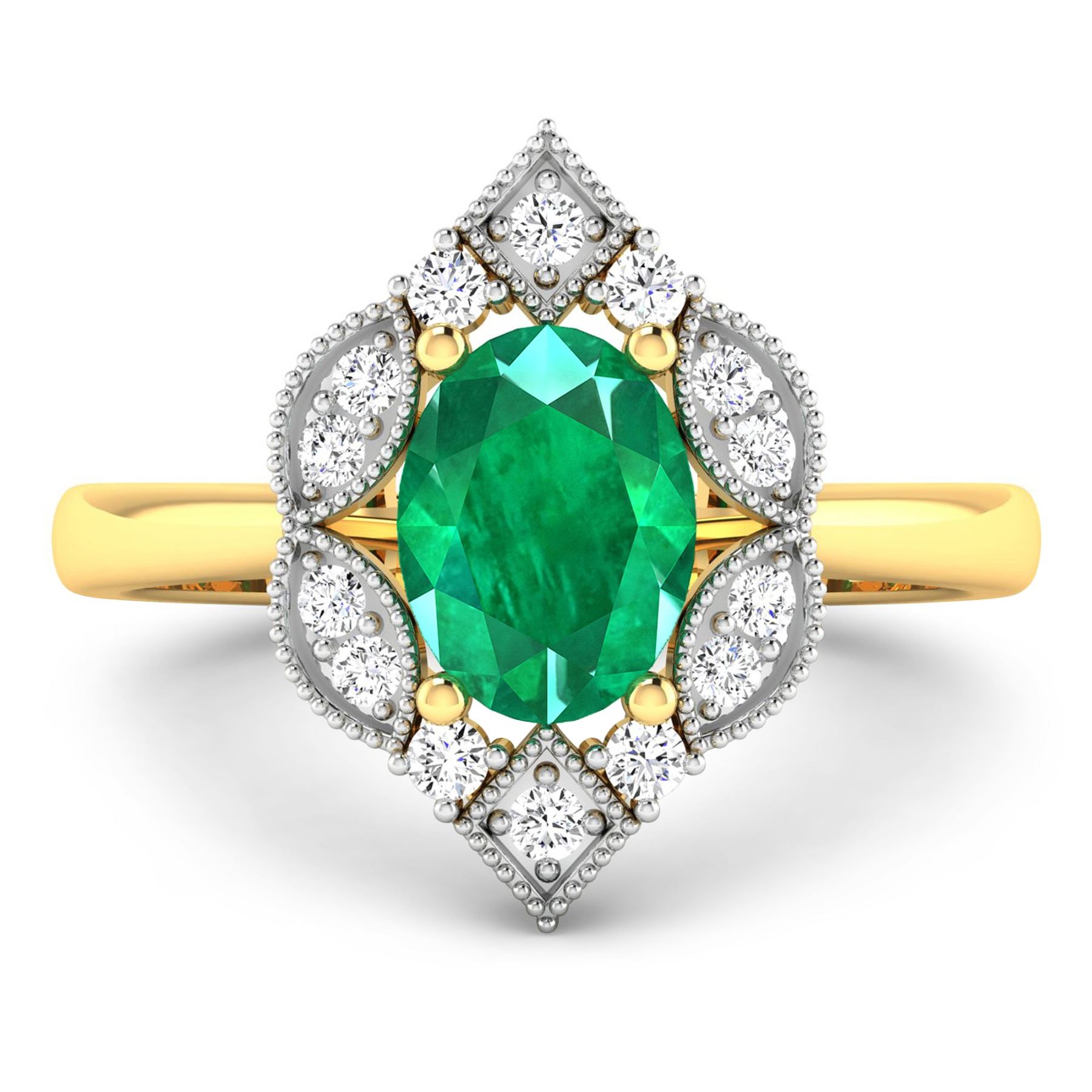 14KT Yellow Gold 1ctw Zambian Emerald and Diamond Ring