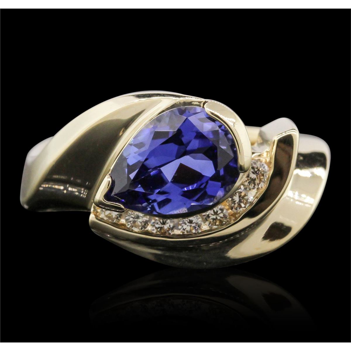 One ring featuring: 14KT Yellow Gold with a total weight of 7.10 grams, Tanzanite with a total weight of 2.00ct, and diamonds with a total weight of 0.20ctw.