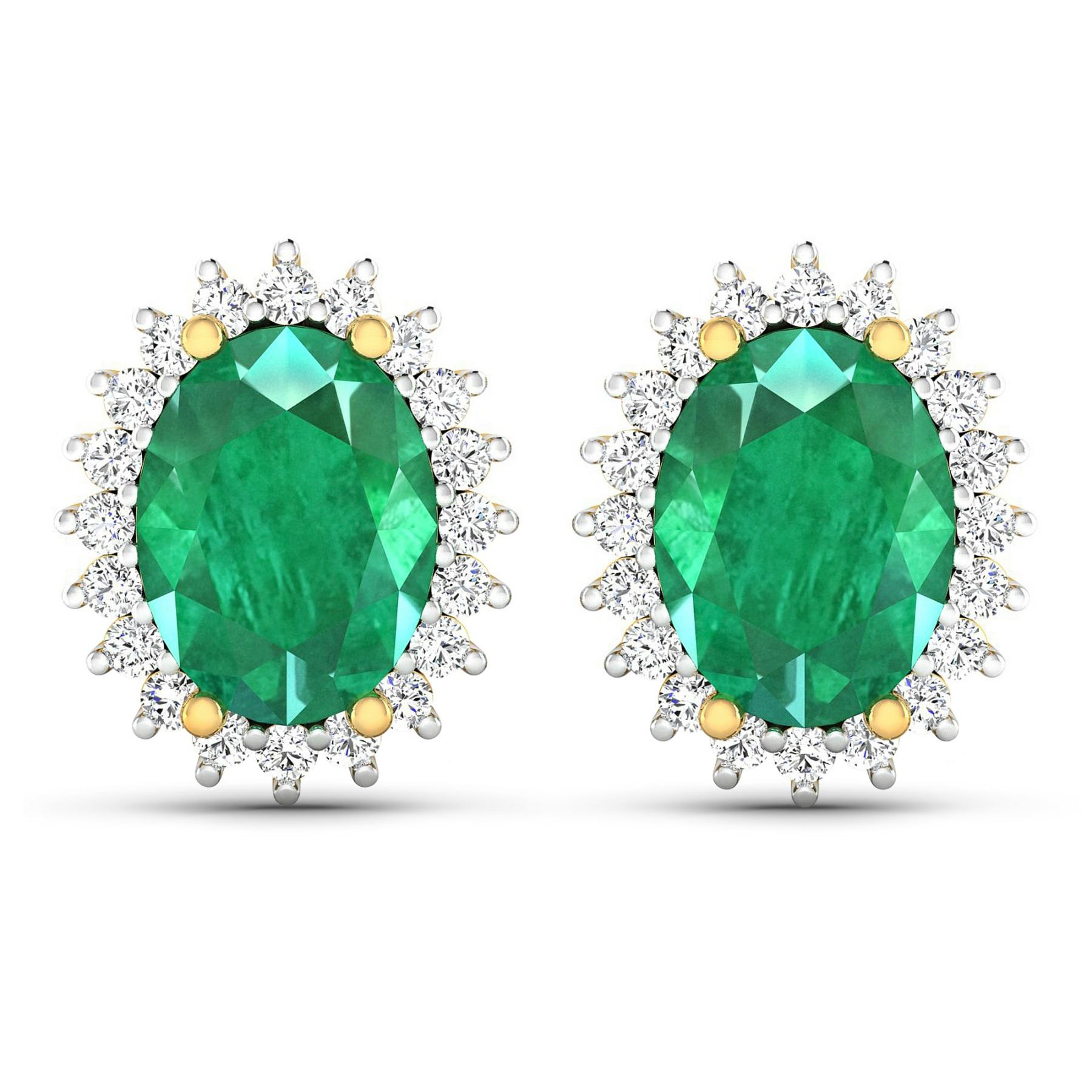 (2) Zambian Emerald stones with a total weight of 2.00cts. (40) round Diamonds with a total weight of 0.26cts with a color of i and clarity of i1-i2. Total weight of these earrings are 2.79 grams.