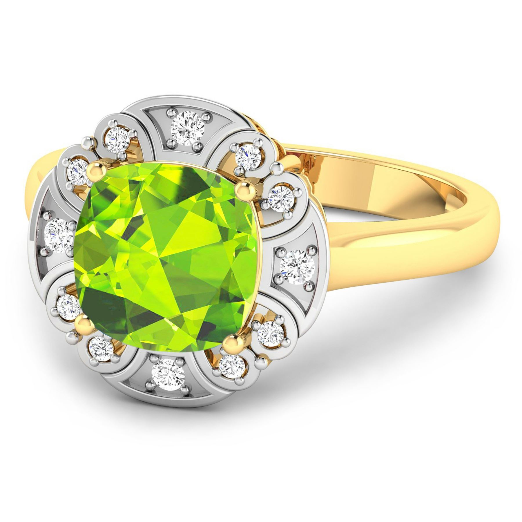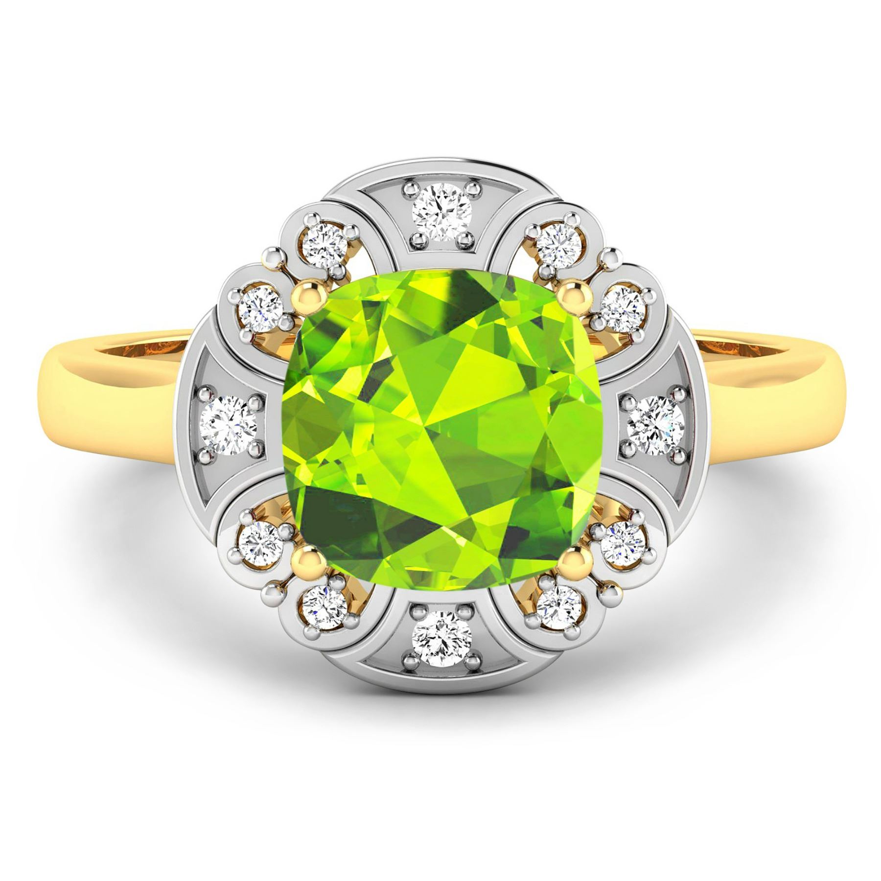 Peridot Cushion 8.00mm - 1Pc + White Diamond F/C Round 1.50mm - 4Pcs + White Diamond F/C Round 1.00mm - 8Pcs ( White Pan Rhodium ) ( SI-2/HI ) Total weight of gemstone is 2.02cts. Total Diamond weight is 0.09cts. Total weight of this ring is 2.79 grams. Ring size 7.