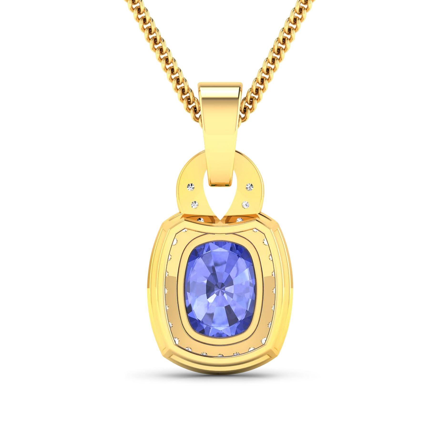 Tanzanite (AA+) Cushion 9x7mm - 1Pc + White Diamond F/C Round 1.20mm - 31Pcs ( White Pan Rhodium ) ( SI2/HI color ) Total weight of gemstone is 2.02cts. Total Diamond weight is 0.25cts. Total weight of this pendant is 2.15 grams.