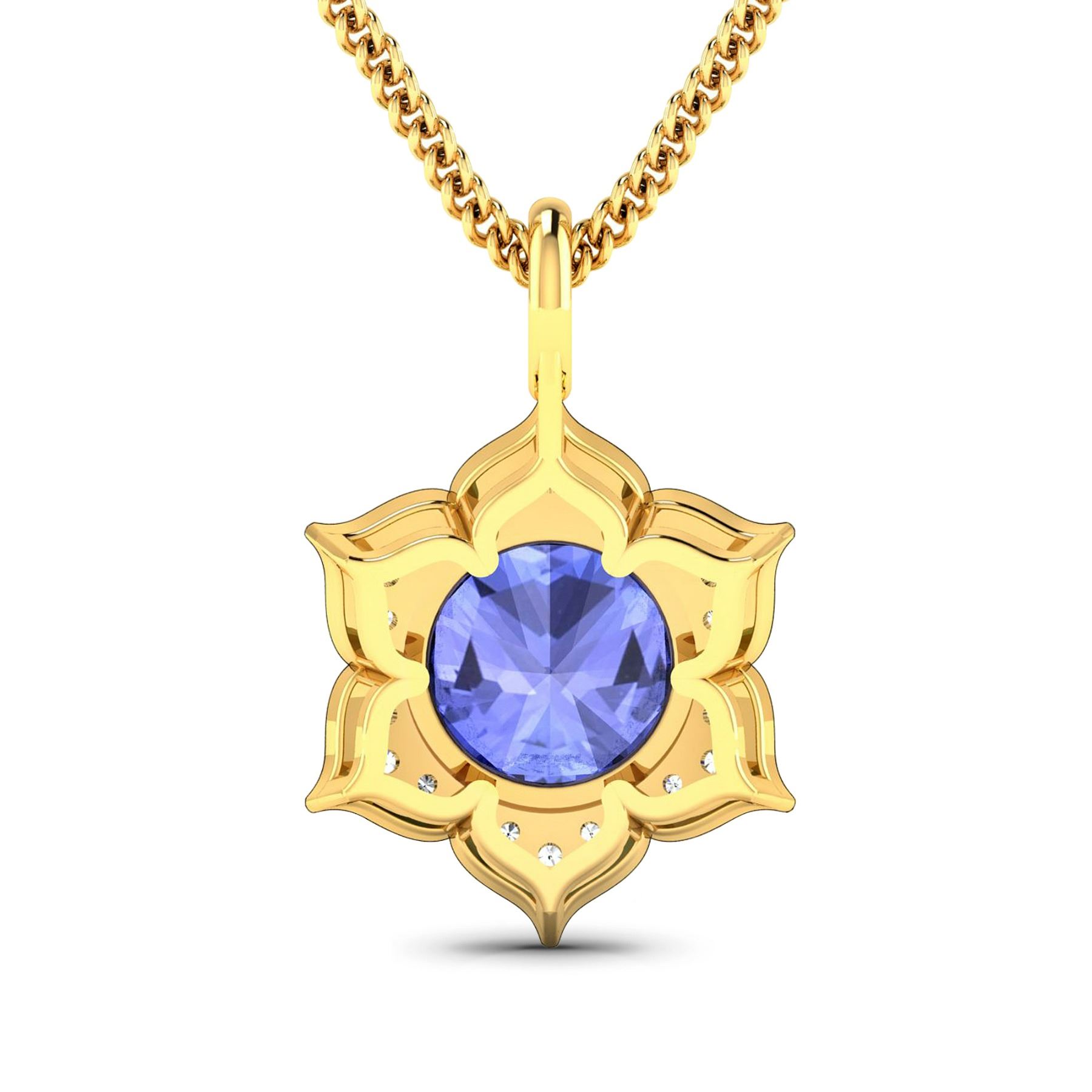 Tanzanite (AA+) Round 8.00mm - 1Pc + White Diamond F/C Round 1.30mm - 6Pcs + White Diamond F/C Round 1.10mm - 12Pcs ( White Pan Rhodium ) ( SI2/HI color ) Total weight of gemstone is 2.02cts. Total Diamond weight is 0.14cts. Total weight of this pendant is 2.05 grams.