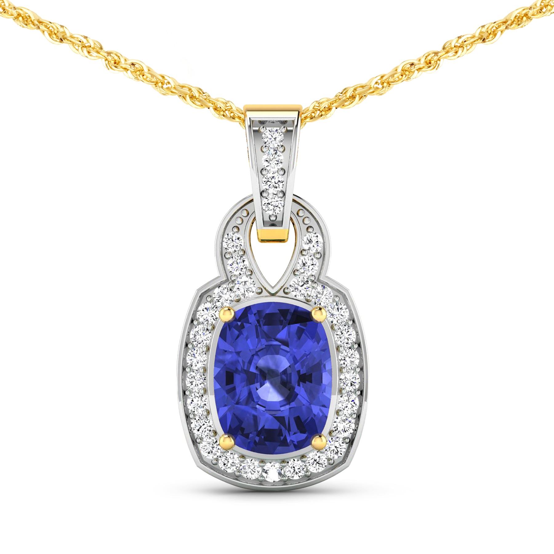 Tanzanite (AA+) Cushion 9x7mm - 1Pc + White Diamond F/C Round 1.20mm - 31Pcs ( White Pan Rhodium ) ( SI2/HI color ) Total weight of gemstone is 2.02cts. Total Diamond weight is 0.25cts. Total weight of this pendant is 2.15 grams.