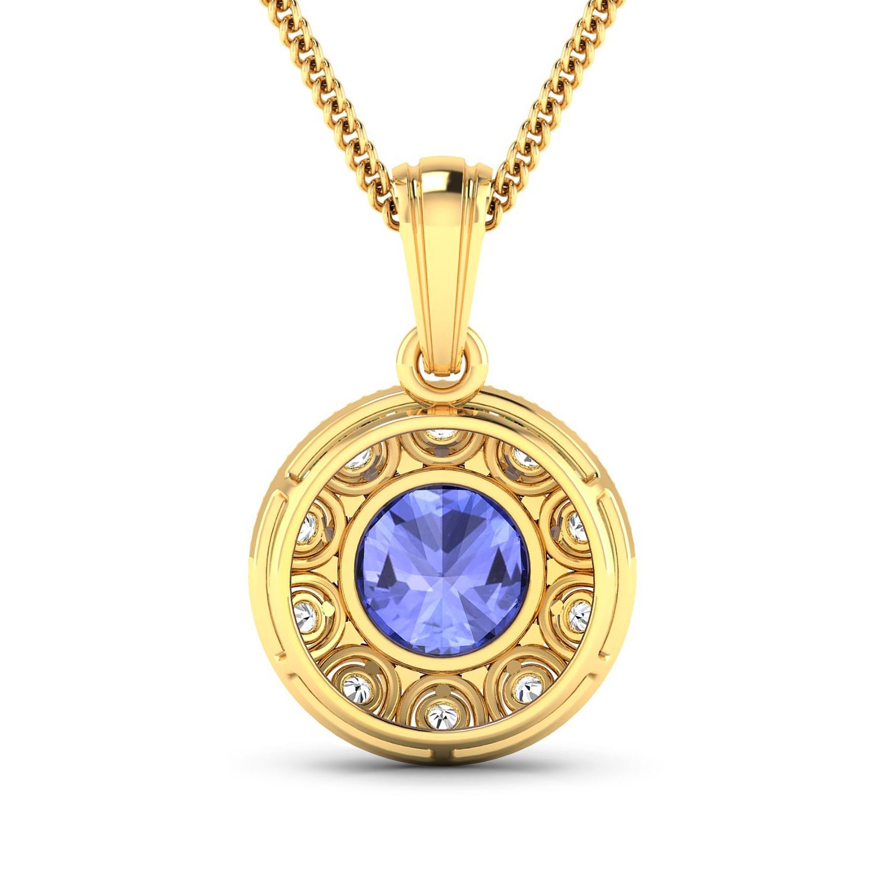 Tanzanite (AA+) Round 8.00mm - 1Pc + White Diamond F/C Round 2.00mm - 10Pcs ( White Pan Rhodium ) ( SI-2/HI ) Total weight of gemstone is 2.02cts. Total Diamond weight is 0.3cts. Total weight of this pendant is 2.78 grams.