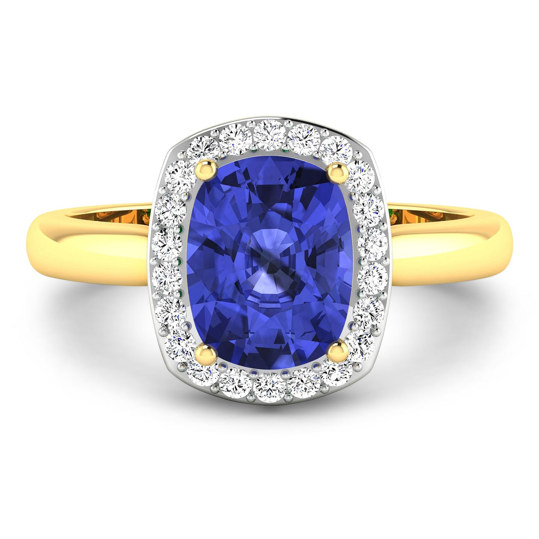 Tanzanite (AA+) Cushion 9x7mm - 1Pc + White Diamond F/C Round 1.30mm - 22Pcs ( White Pan Rhodium ) ( SI2/HI color ) Total weight of gemstone is 2.02cts. Total Diamond weight is 0.22cts. Total weight of this ring is 3.03 grams. Ring size 7.