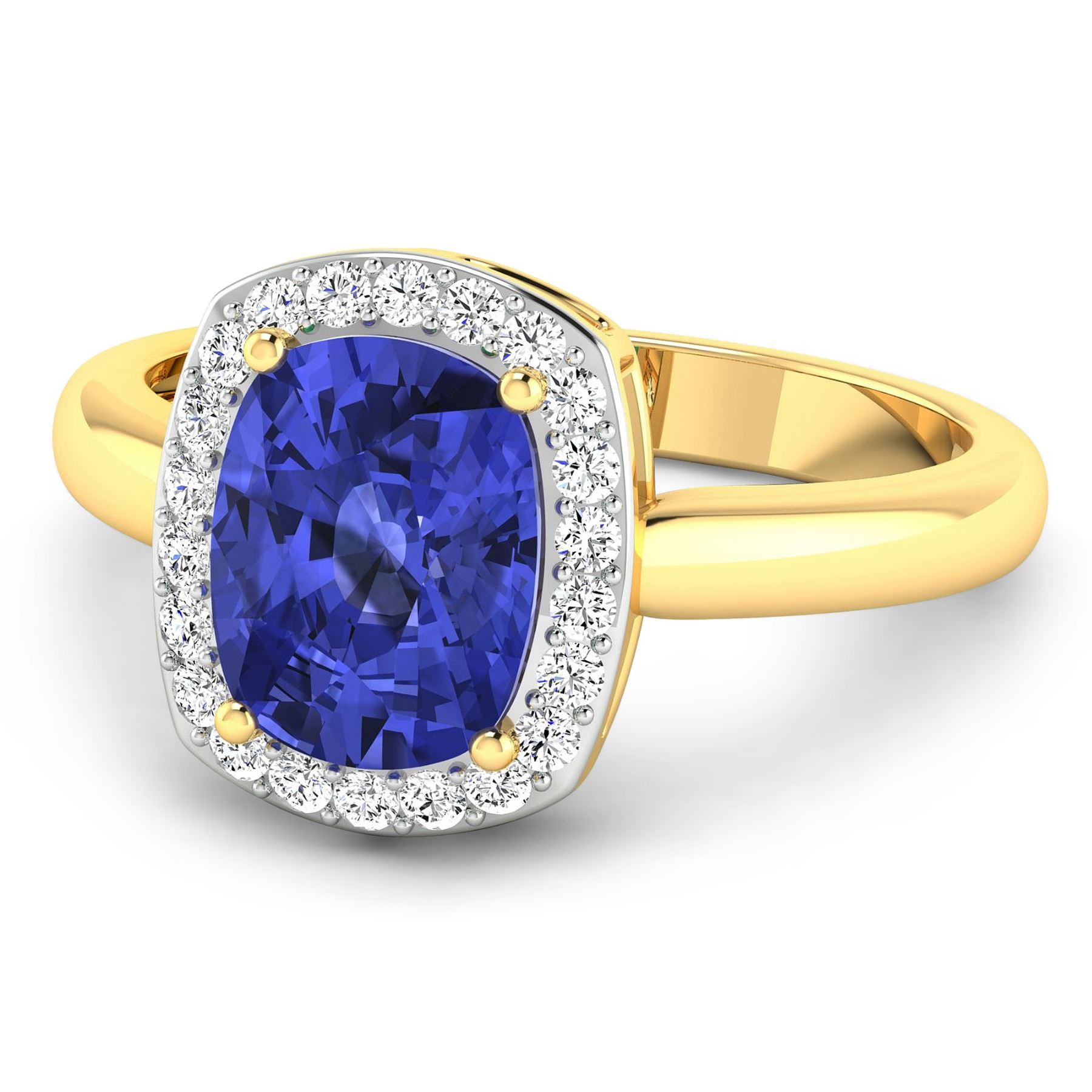 Tanzanite (AA+) Cushion 9x7mm - 1Pc + White Diamond F/C Round 1.30mm - 22Pcs ( White Pan Rhodium ) ( SI2/HI color ) Total weight of gemstone is 2.02cts. Total Diamond weight is 0.22cts. Total weight of this ring is 3.03 grams. Ring size 7.
