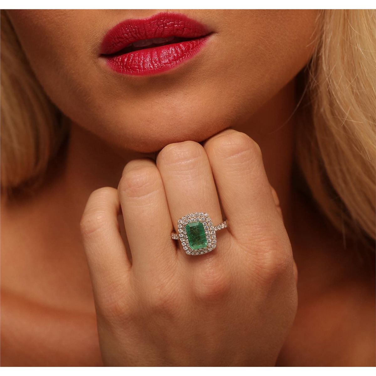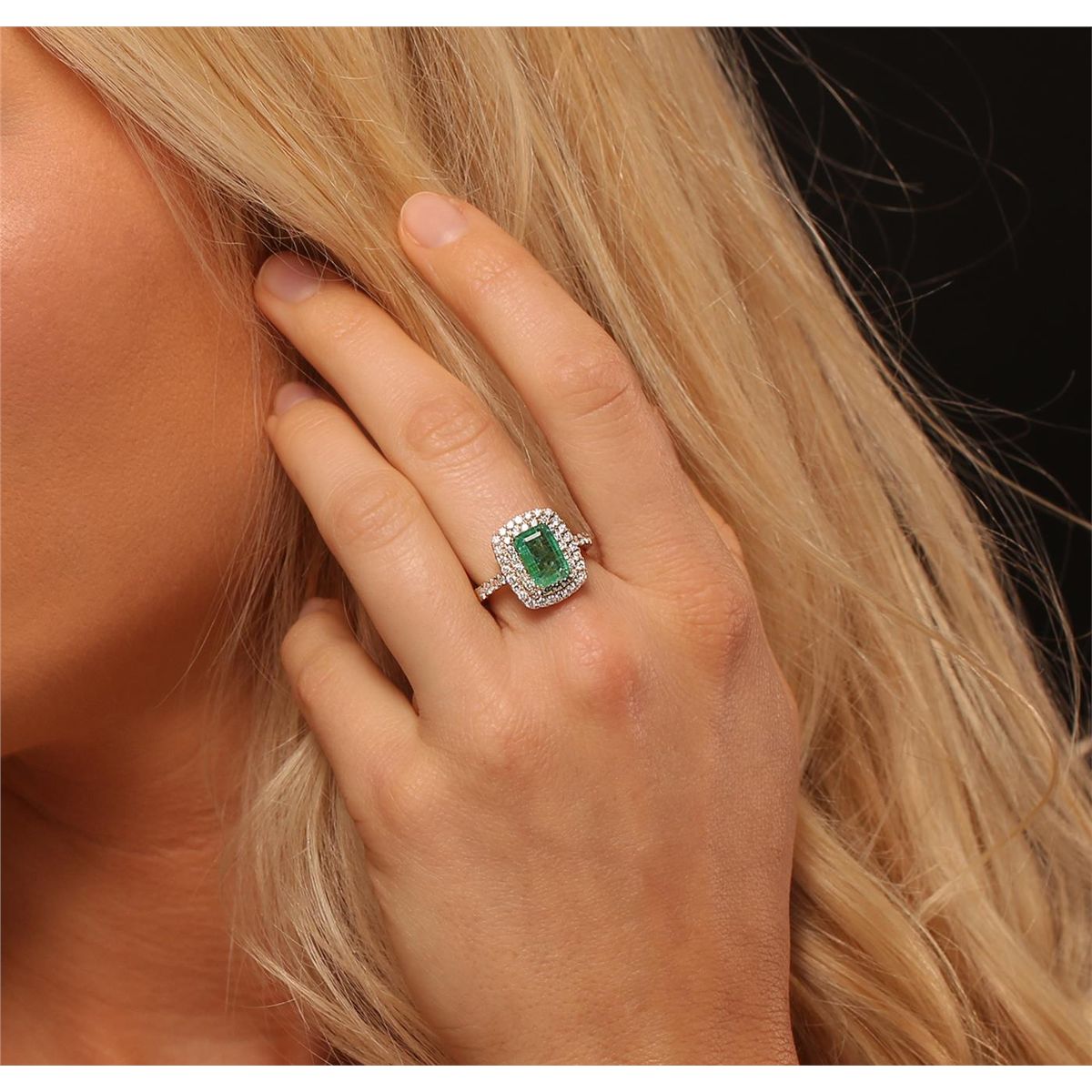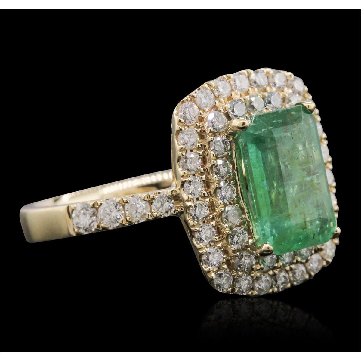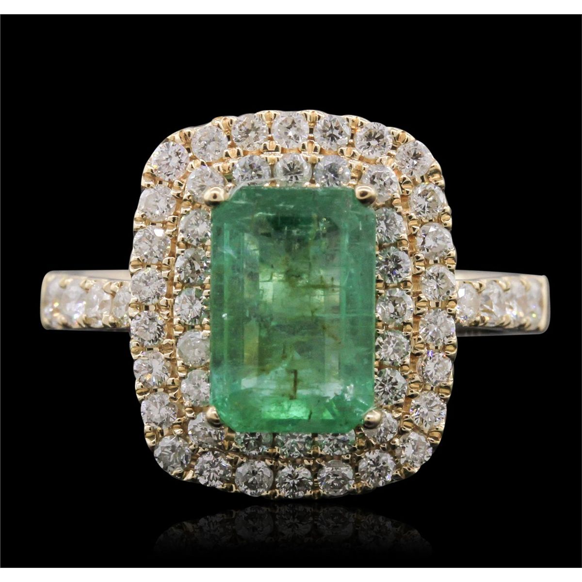 One electronically tested 14KT yellow gold Ladies combination cast & assembled ring with a high polish finish. Condition is new. Identified with markings of "14K". Containing: One prong set emerald standard step cut natural emerald, measuring 10.00 x 7.00 x 3.90mm, approximate weight of 2.03ct., clarity is heavily included, type III, medium light, very slightly grayish, very slightly bluish green color, (GIA vslbG 4/3), cut is good. Colored gemstones are presumed to have been subjected to commonly used color/clarity enhancement processes. Fifty-Four bead set round brilliant cut diamonds, measuring 2.10 - 1.40 x 1.05mm (depth est.) approximate. Total Weight of 54 Stones = 0.97ct. Clarity: I-1 to I-2. Color: I - J, Cut is Good. Total Weight of Colored Stones 2.03ct. Total Weight of Diamonds 0.97ct. Total Weight of Ring 5.80 grams. GGL Appraised at $7,680.00.