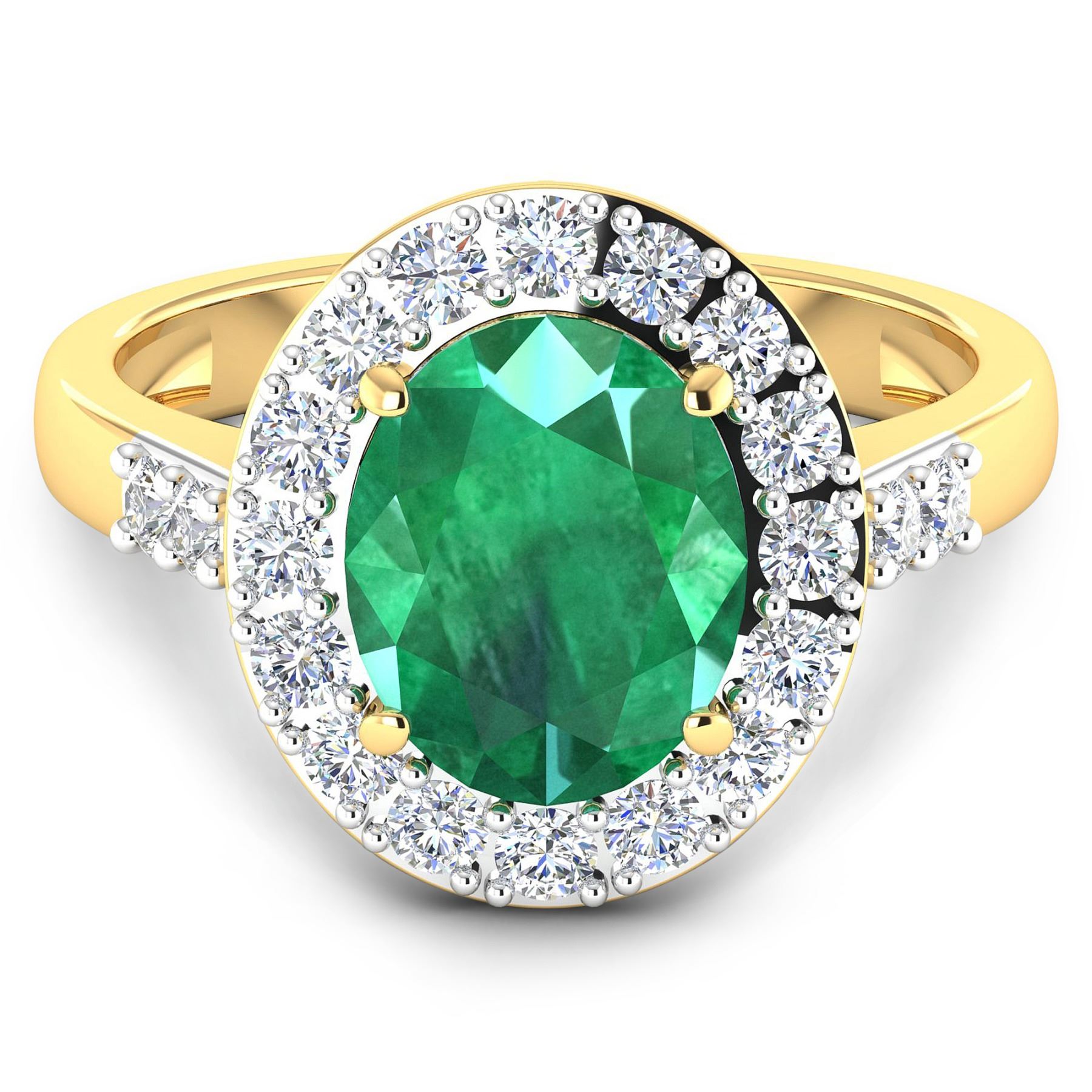 Zambian Emerald (AA) Oval 10x8mm - 1Pc + White Diamond F/C Round 2.00mm - 20Pcs ( White Pan Rhodium ) ( Diamond Quality : SI-2/HI ). Total weight of gemstone is 2.03cts. Total weight of Diamonds is 0.6cts. Total weight of this ring is 3.99 grams. Ring size 7.