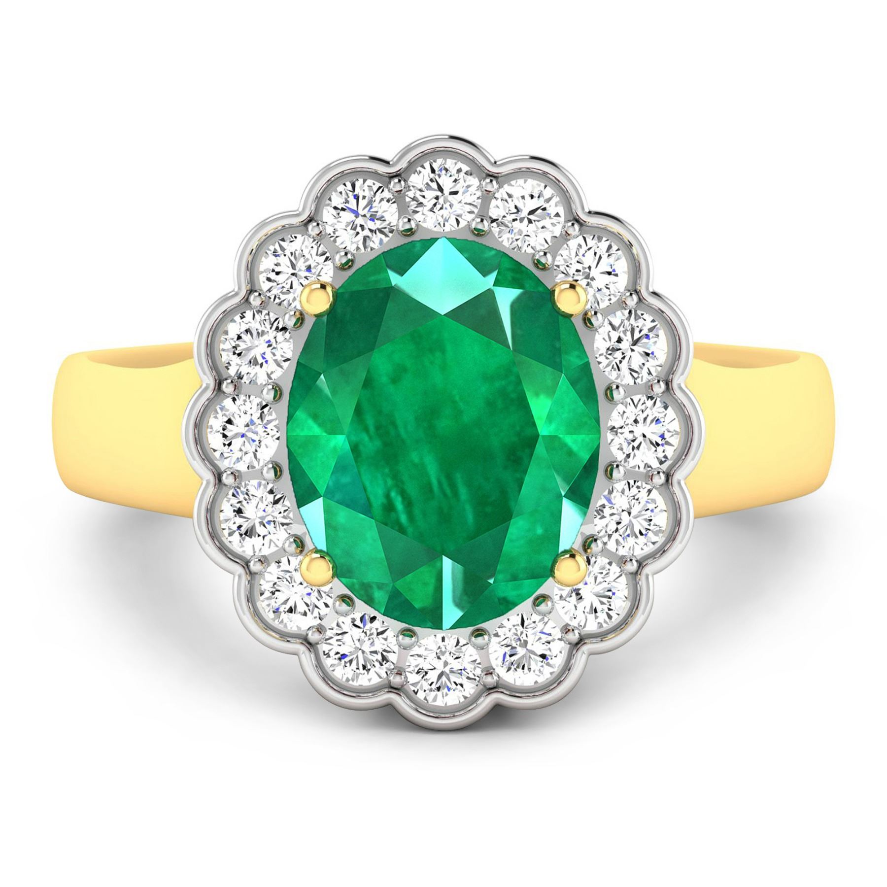 Zambian Emerald (AA) Oval 10x8mm - 1Pc + White Diamond F/C Round 2.00mm - 16Pcs ( White Pan Rhodium ) ( SI-2/HI ) Total weight of gemstone is 2.03cts. Total Diamond weight is 0.48cts. Total weight of this ring is 4.12 grams. Ring size 7.