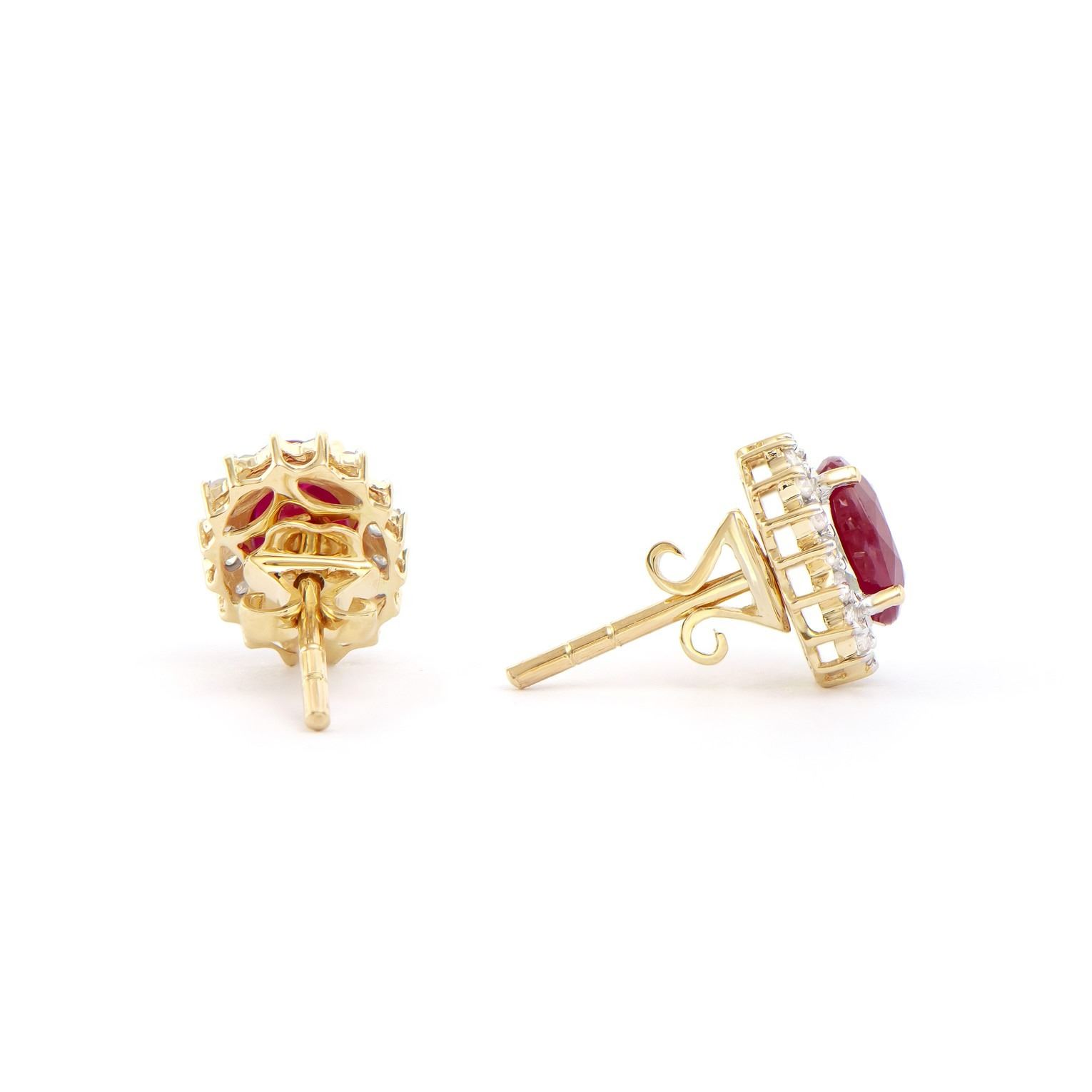 (2) Rubies with a total weight of 2.05cts. (32) round Diamonds with a total weight of 0.26cts with a color of H-I and clarity of I2-I3. Total weight of these earrings are 2.00 grams.