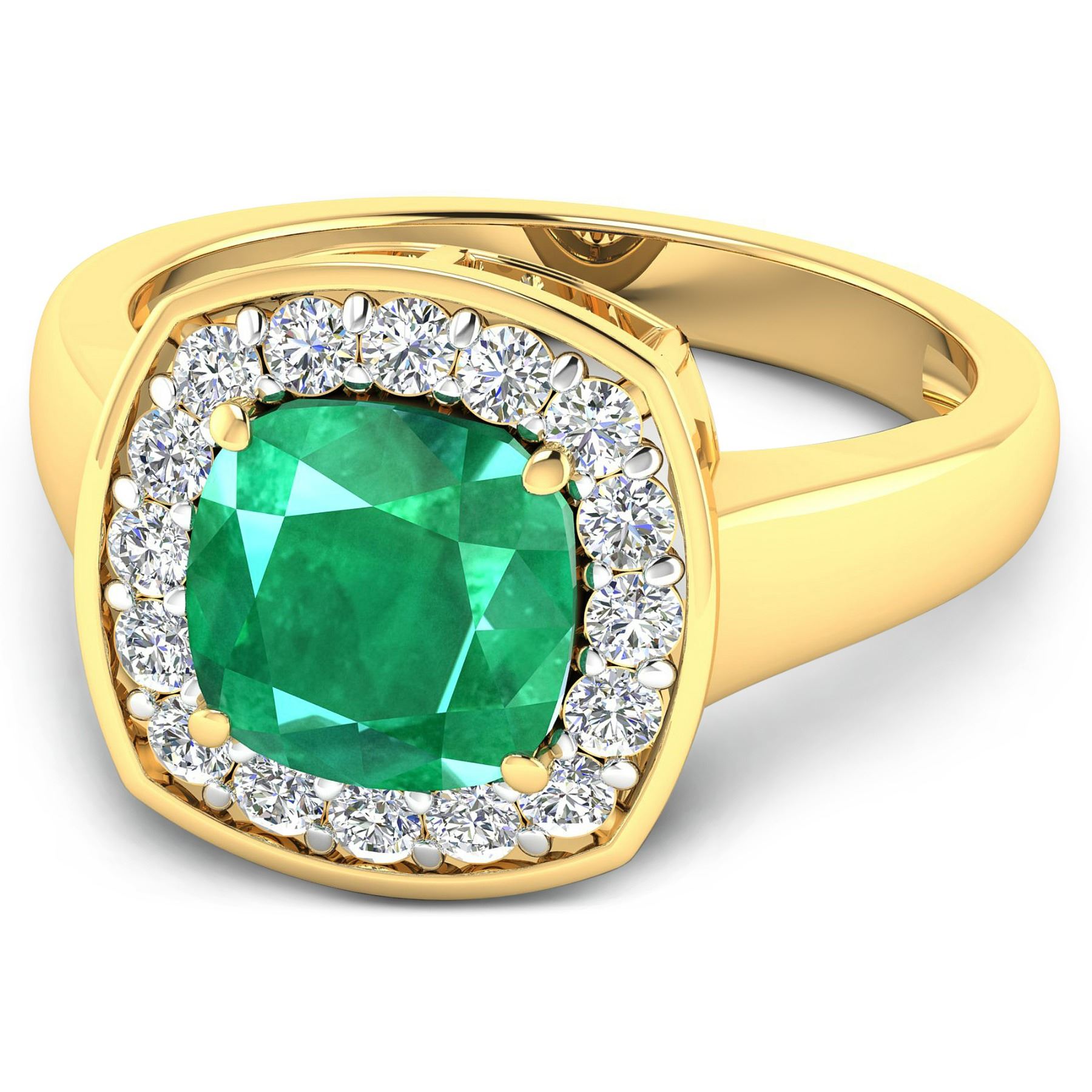 Zambian Emerald (AA) Cushion 8.00mm - 1Pc + White Diamond F/C Round 2.00mm - 16Pcs ( White Pan Rhodium ) ( Diamond Quality : SI-2/HI ). Total weight of gemstone is 2.07cts. Total weight of Diamonds is 0.48cts. Total weight of this ring is 4.18 grams. Ring size 7.