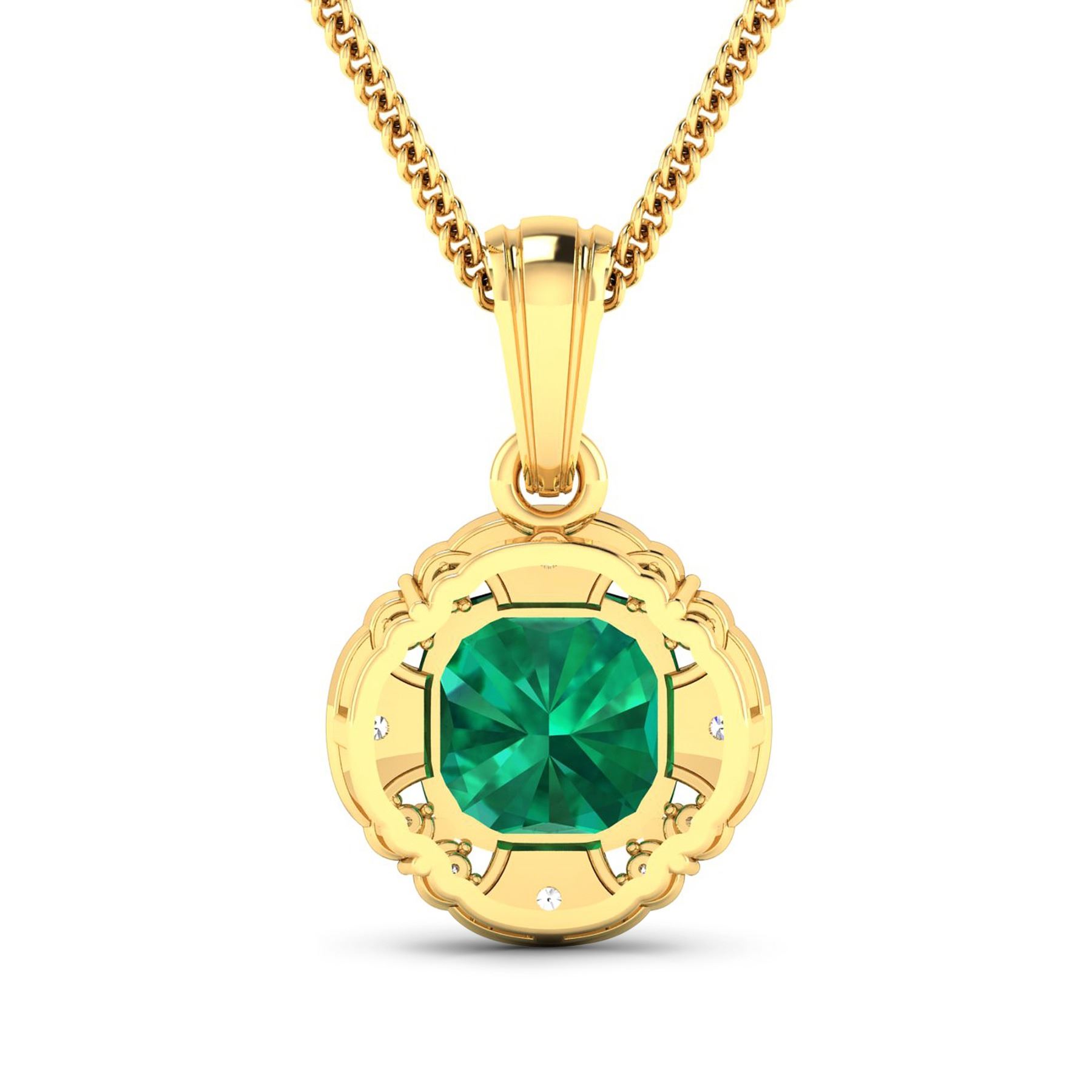 Zambian Emerald (AA) Cushion 8.00mm - 1Pc + White Diamond F/C Round 1.50mm - 4Pcs + White Diamond F/C Round 1.00mm - 8Pcs ( White Pan Rhodium ) ( SI-2/HI ) Total weight of gemstone is 2.07cts. Total Diamond weight is 0.09cts. Total weight of this pendant is 2.5 grams.