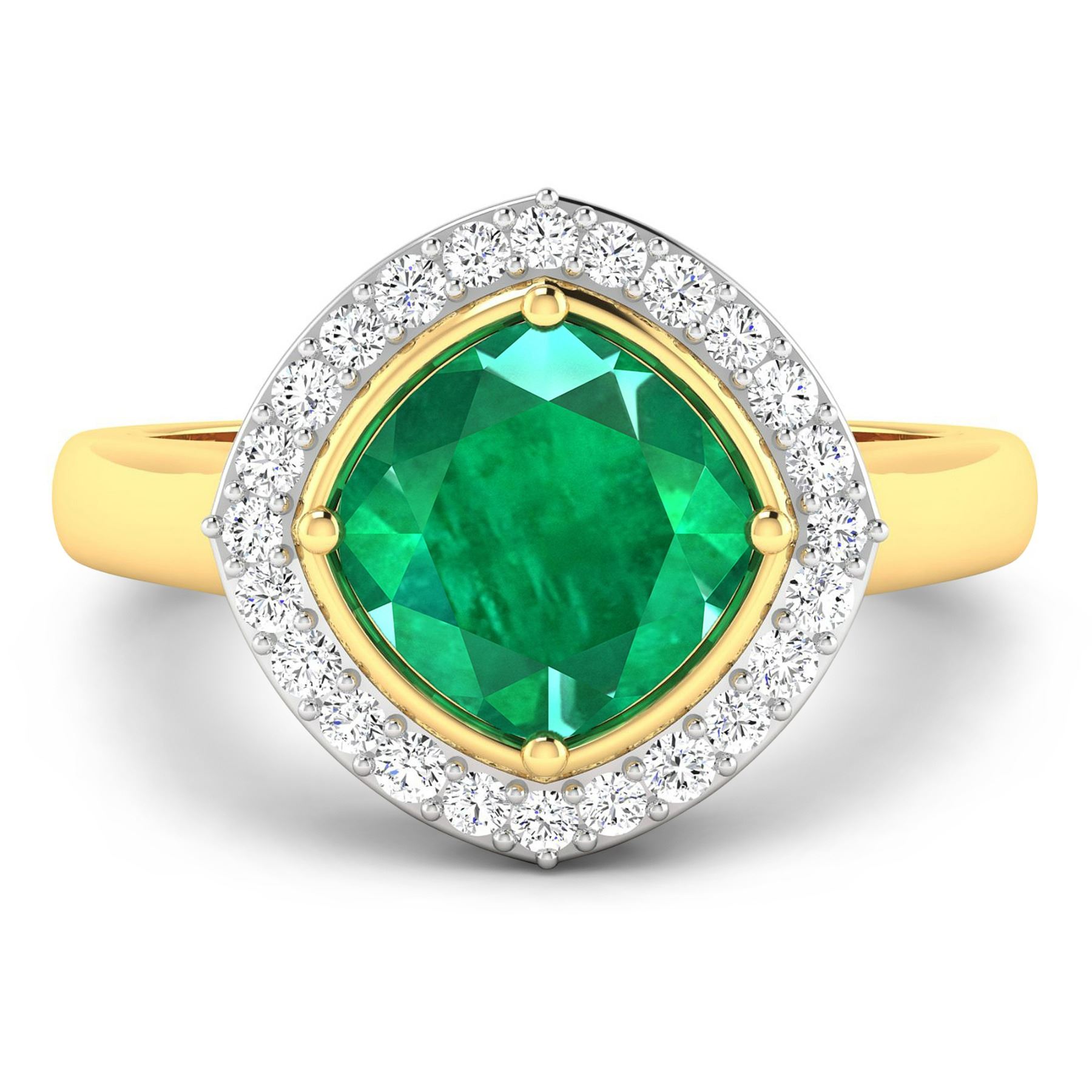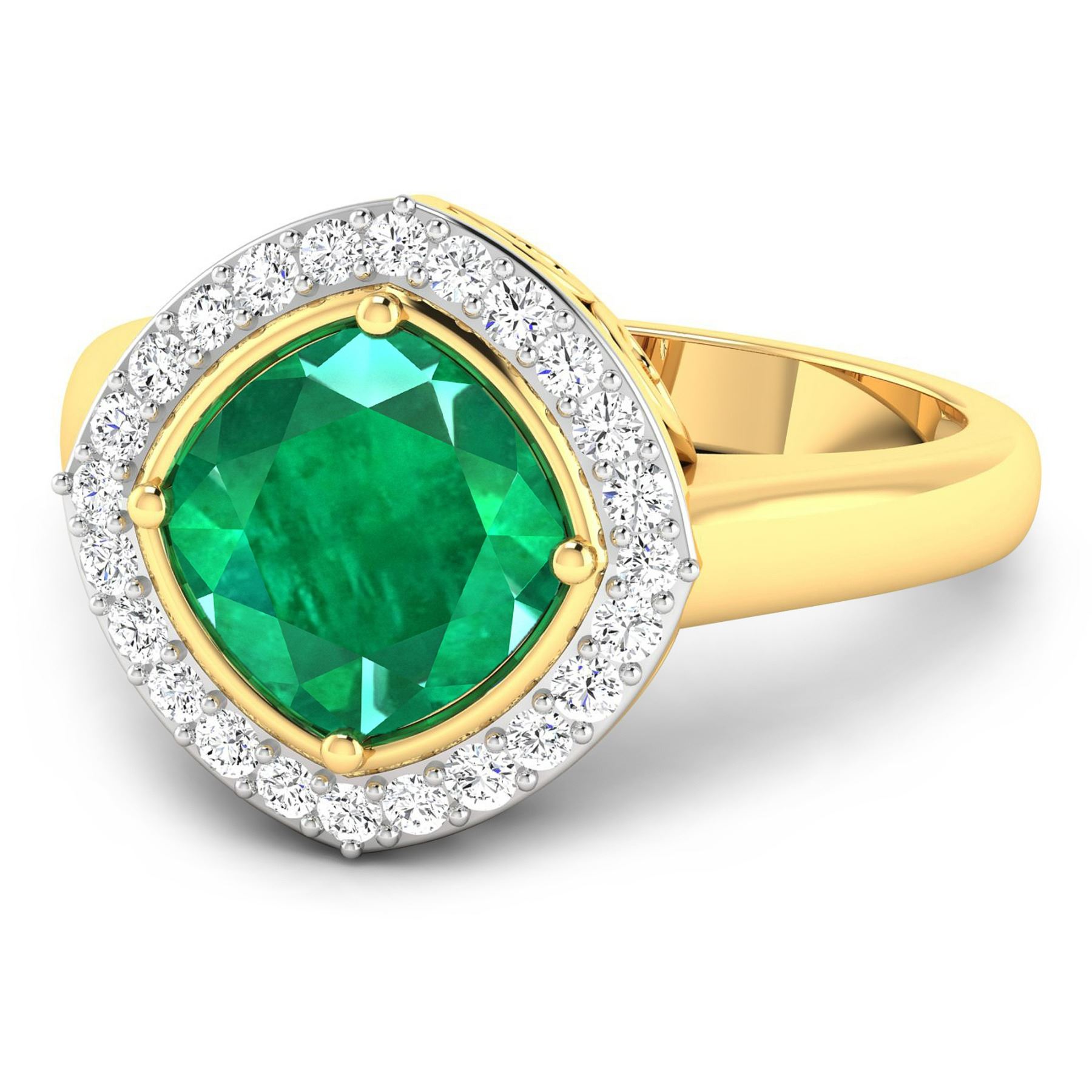 Zambian Emerald (AA) Cushion 8.00mm - 1Pc + White Diamond F/C Round 1.30mm - 24Pcs ( White Pan Rhodium ) ( SI-2/HI ) Total weight of gemstone is 2.07cts. Total Diamond weight is 0.24cts. Total weight of this ring is 3.61 grams. Ring size 7.