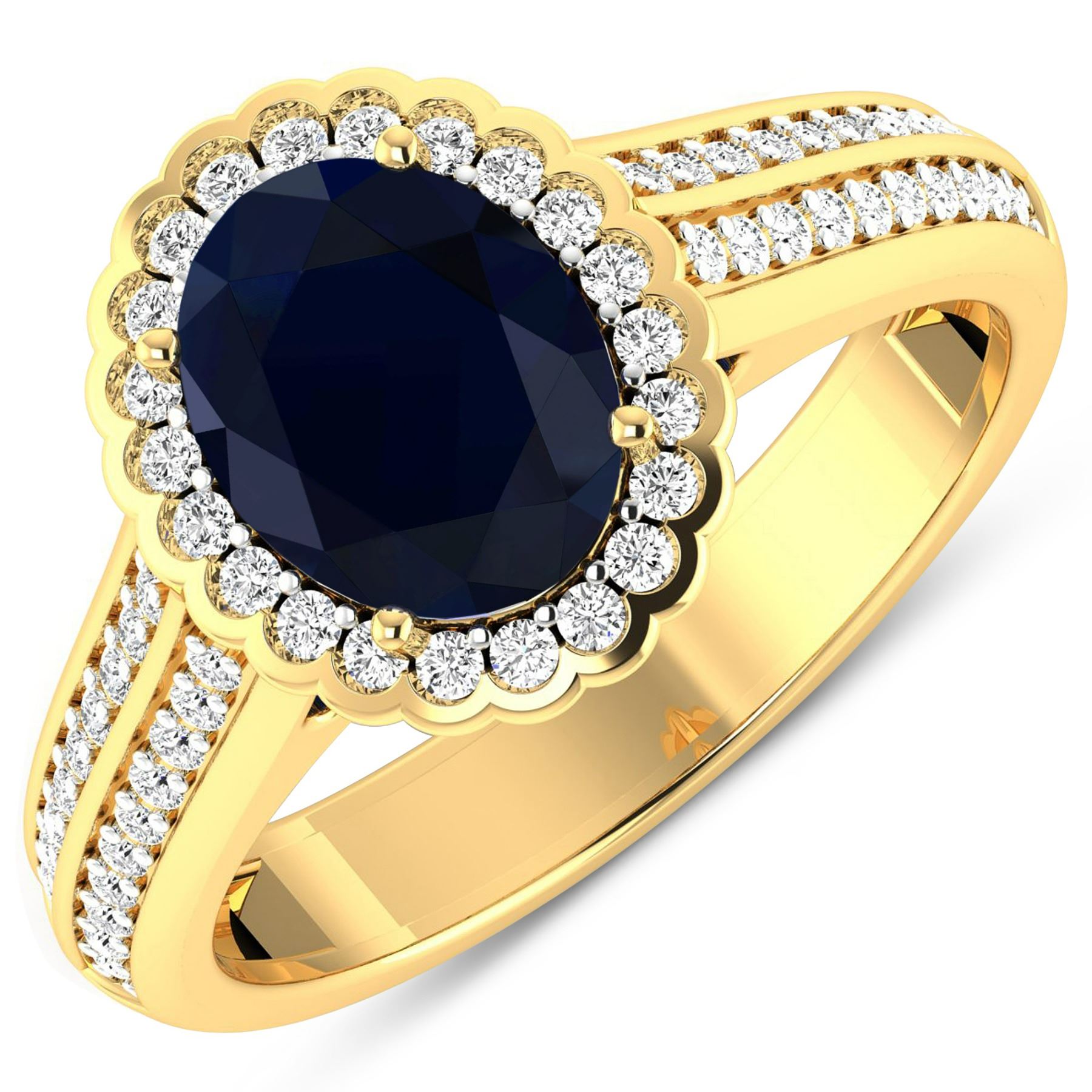 Blue Sapphire (AA) Oval 9x7mm - 1Pc + White Diamond F/C Round 1.20mm - 30Pcs + White Diamond F/C Round 1.10mm - 20Pcs + White Diamond F/C Round 1.00mm - 12Pcs ( White Pan Rhodium ) (I1-I2/I color). Total weight of gemstone is 2.1cts. Total weight of Diamonds is 0.42cts. Total weight of this ring is 3.68 grams. Ring size 7.