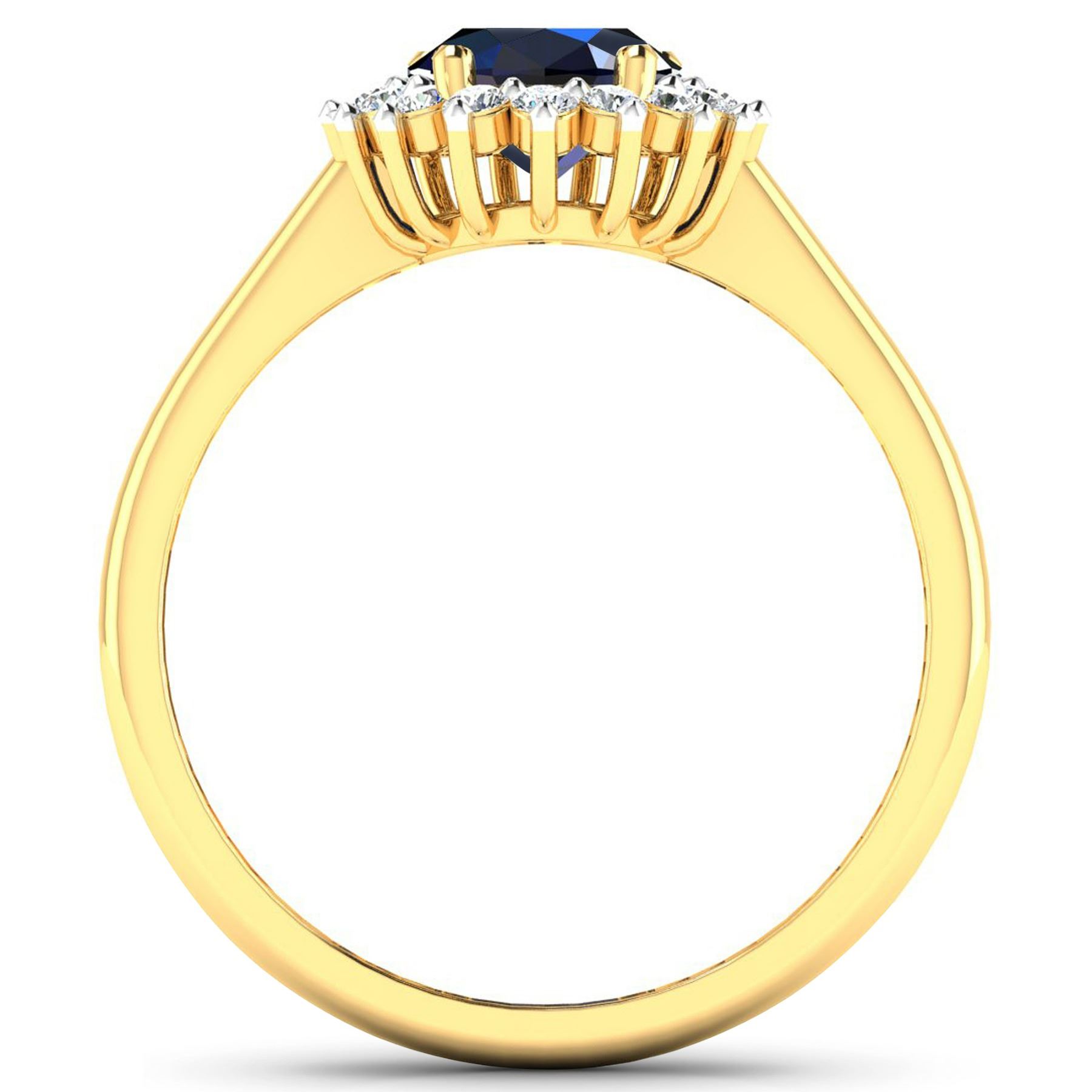 1 Blue Sapphire stone with a total weight of 2.10cts. Blue Sapphire (AA) Oval 9x7mm - 1Pc + White Diamond F/C Round 1.40mm - 20Pcs (I1-I2/I color). 0.22cts of diamonds. Total weight of ring is 2.16 grams. Ring size 7.