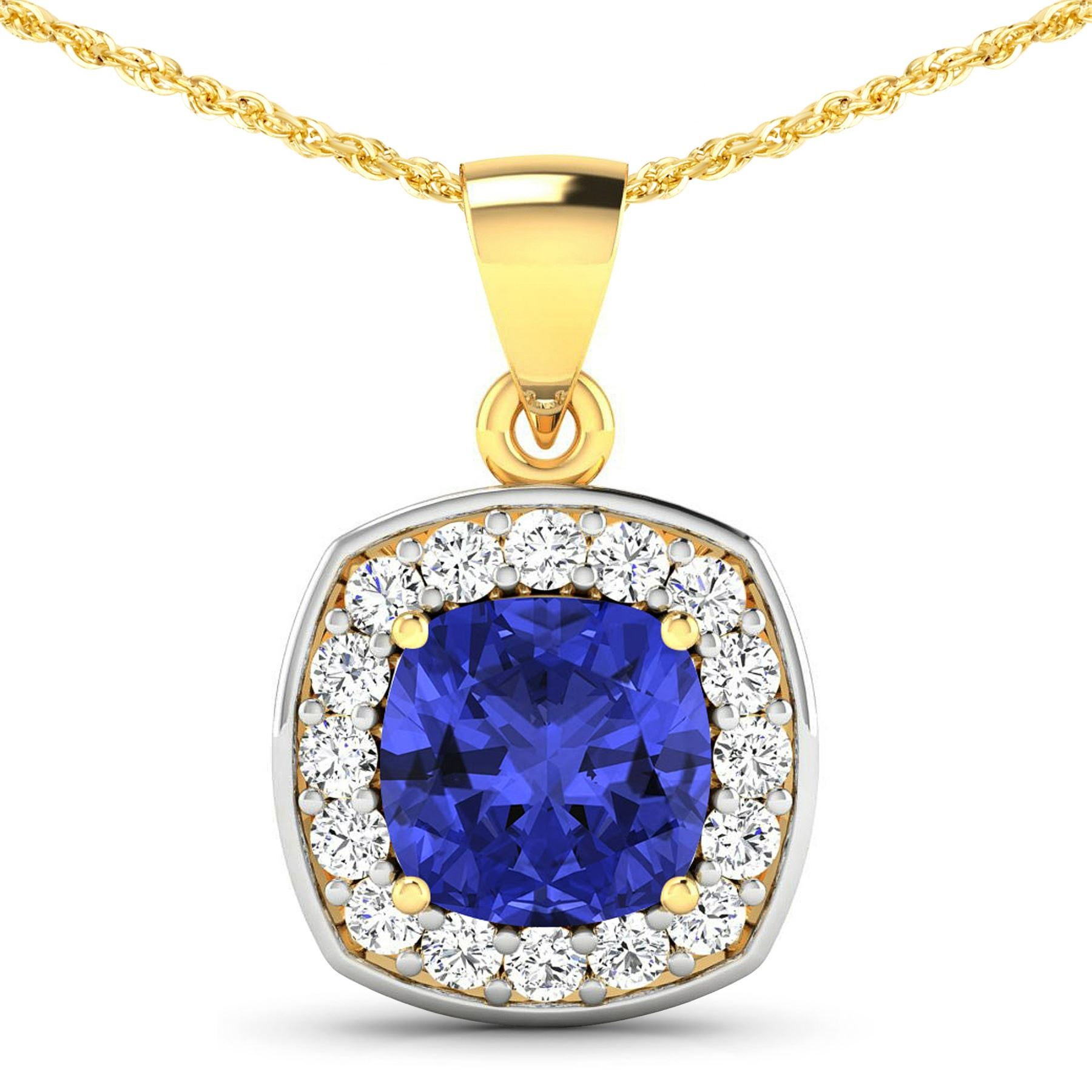 14KT Yellow Gold 2.10ct Tanzanite and Diamond Pendant with Chain
