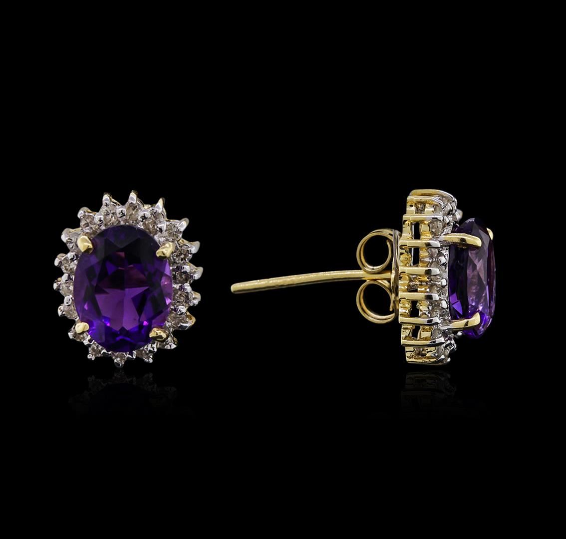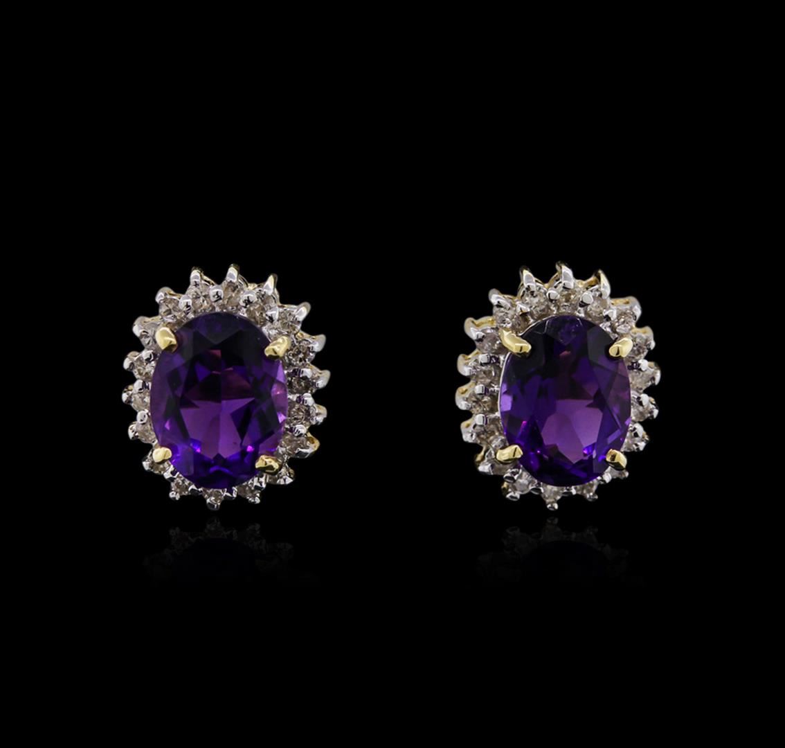 One pair of earrings featuring: 14KT yellow gold weighing 2.70 grams containing two amethyst with a total weight of 2.15ct and diamonds with a total weight of 0.30ct.