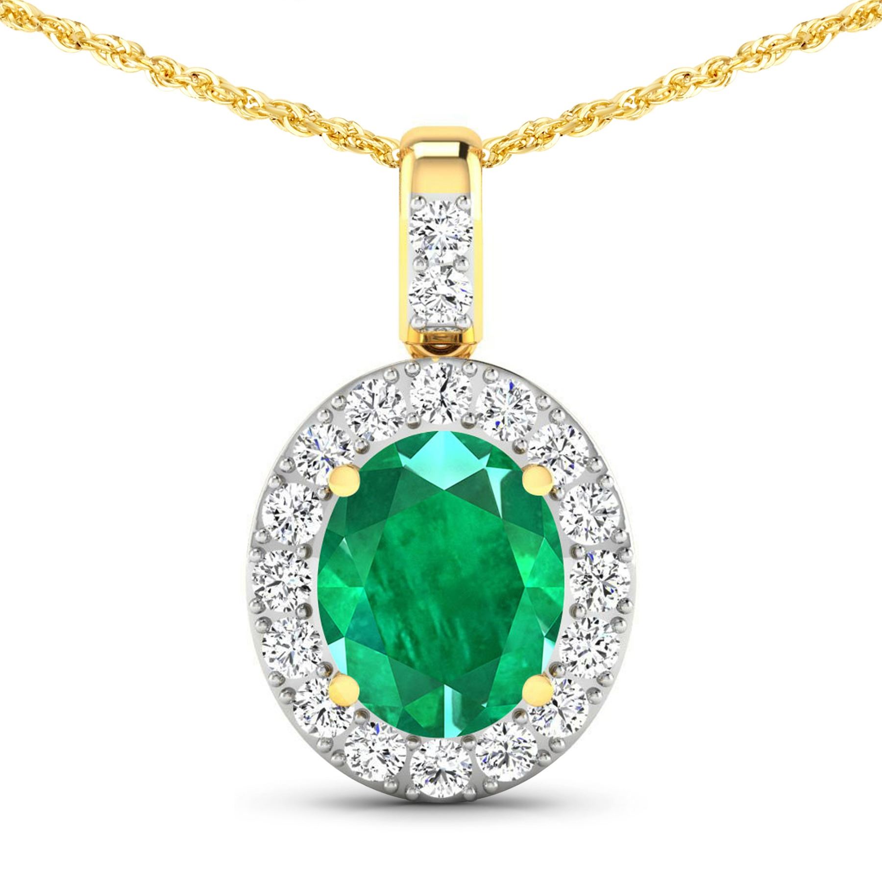 Zambian Emerald (AA) Oval 10x8mm - 1Pc + White Diamond F/C Round 2.00mm - 18Pcs ( Diamond Quality : SI-2/HI ) Total weight of gemstone is 2.15cts. Total Diamond weight is 0.54cts. Total weight of this pendant is 2.4 grams.