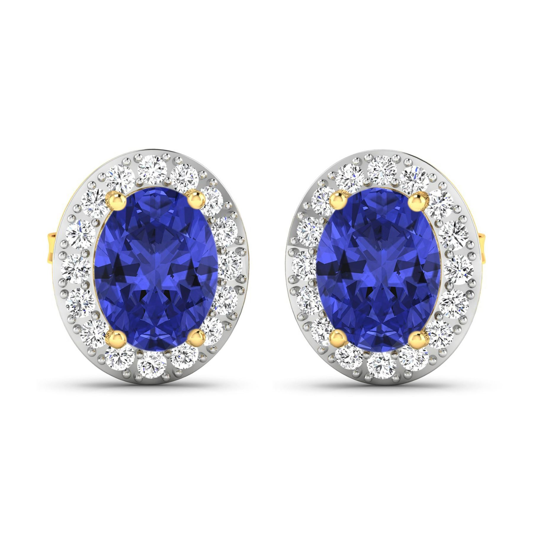 Tanzanite (AA+) Oval 8x6mm - 2Pcs + White Diamond F/C Round 1.50mm - 32Pcs ( Diamond Quality : SI-2/HI ) ( Push Post ) Total weight of gemstones is 2.18cts. Total Diamond weight is 0.44cts. Total weight of these earrings are 2.66 grams.